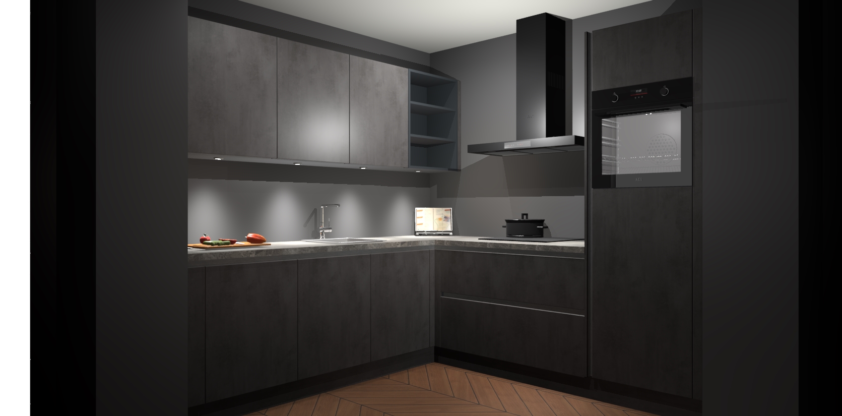 Met een modern, tijdloos design en ruime opslagruimte, zult u zich in no-time thuis voelen in uw nieuwe keuken. Uw leven wordt eenvoudiger met de soft-close deuren die voor het ultieme stille comfort zorgen - geen geluid dat u stoort terwijl u kookt. Ook is de keuken voorzien van 5 ingebouwde apparaten: een oven, inductie kookplaat, afzuigkap, vaatwasser en koelkast. Deze kunnen gemakkelijk na bestelling worden bijgewerkt naar AEG - waardoor uw luxe ervaring compleet is.