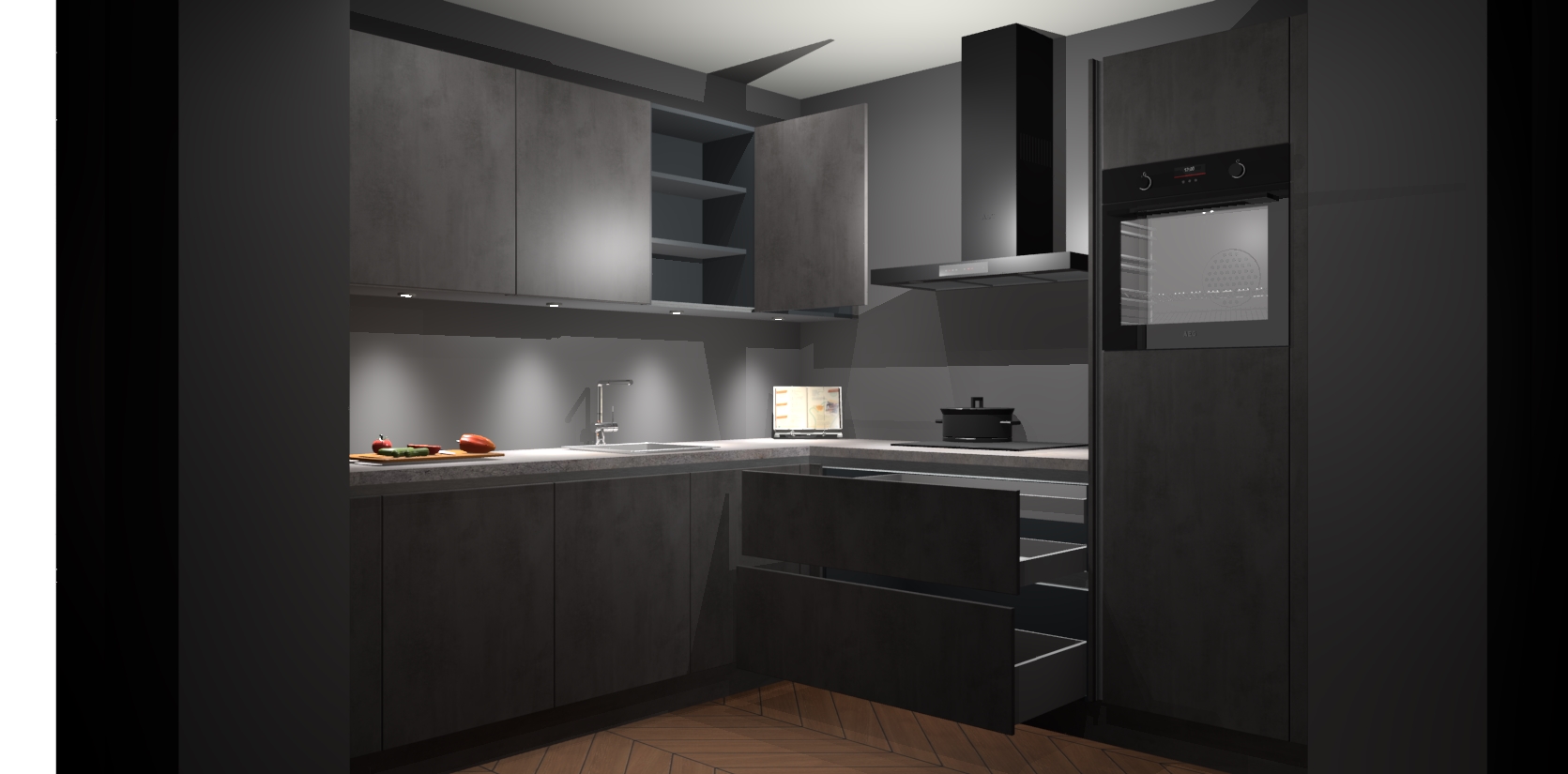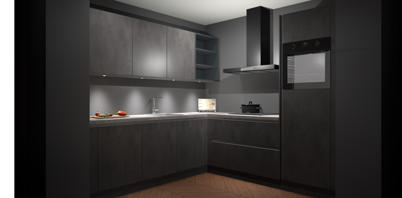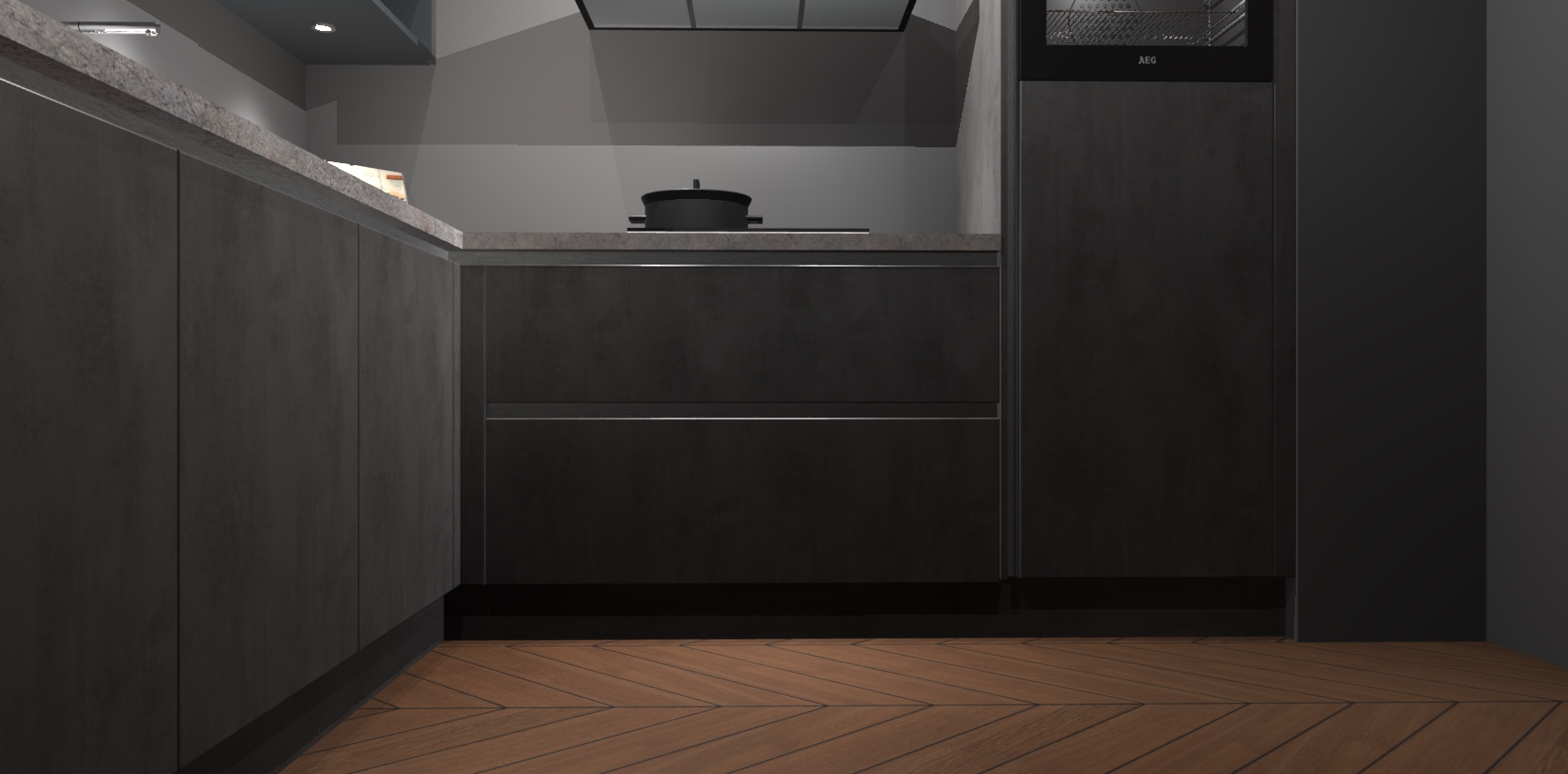 Met een modern, tijdloos design en ruime opslagruimte, zult u zich in no-time thuis voelen in uw nieuwe keuken. Uw leven wordt eenvoudiger met de soft-close deuren die voor het ultieme stille comfort zorgen - geen geluid dat u stoort terwijl u kookt. Ook is de keuken voorzien van 5 ingebouwde apparaten: een oven, inductie kookplaat, afzuigkap, vaatwasser en koelkast. Deze kunnen gemakkelijk na bestelling worden bijgewerkt naar AEG - waardoor uw luxe ervaring compleet is.