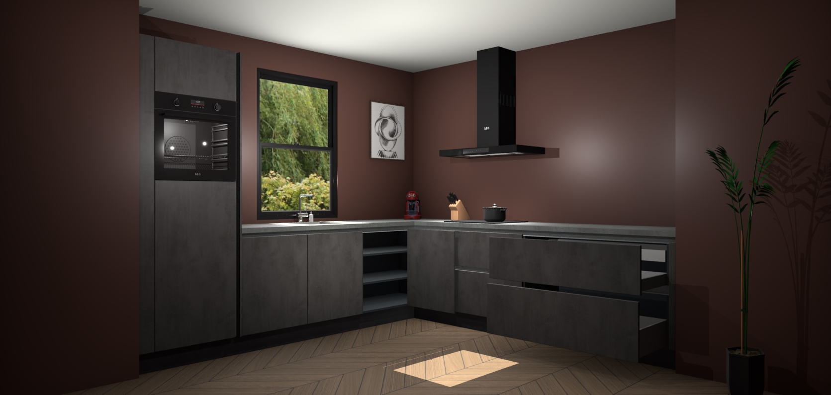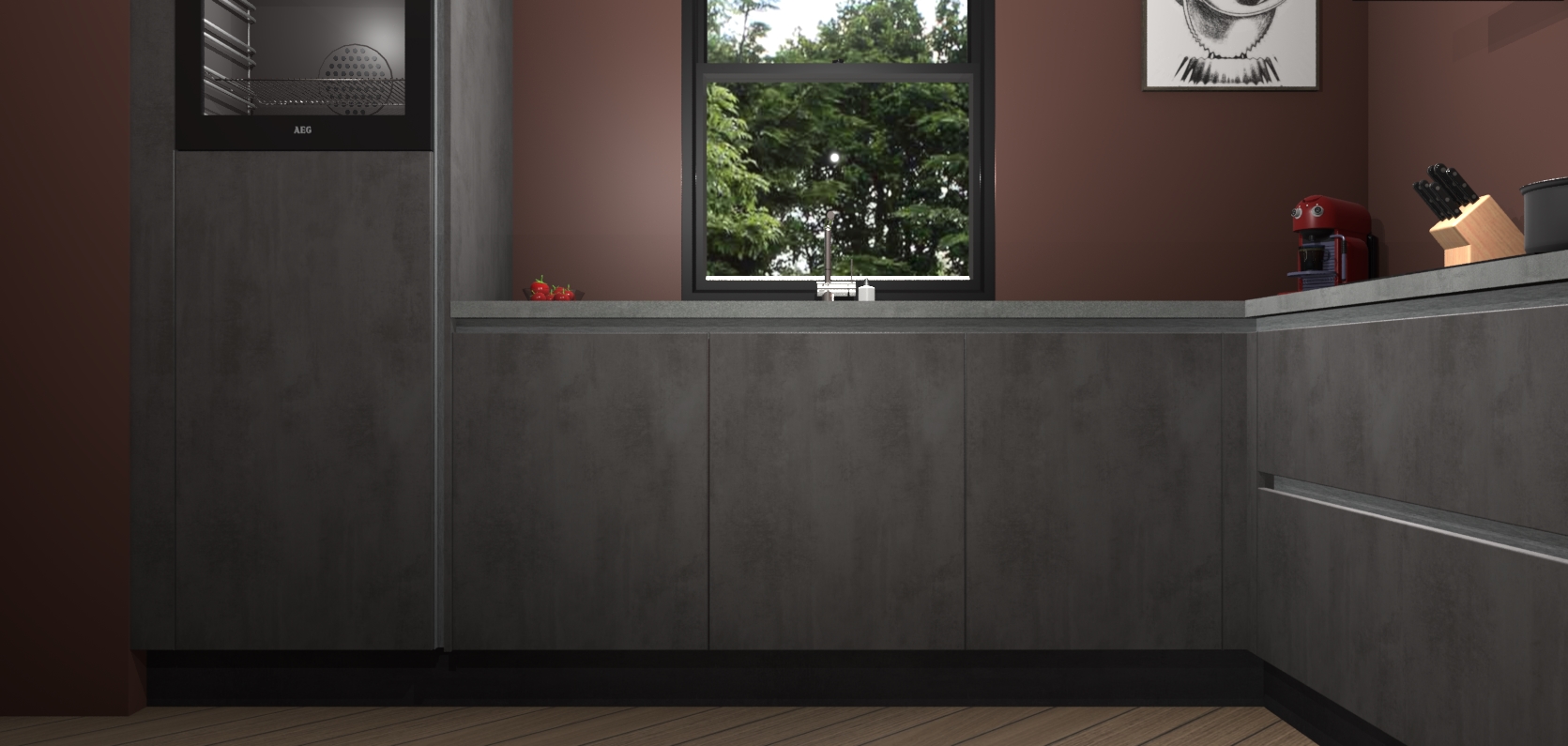 Welkom bij de Beton antraciet greeploze keuken Lublin. Deze prachtige keuken zal de komende jaren het middelpunt van de belangstelling in uw huis zijn. Uitgerust met vijf inbouwapparaten komt u nooit kookgereedschap tekort. Bovendien geeft de warme houtlook elke ruimte een uitnodigende en tijdloze uitstraling.