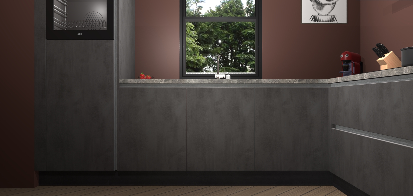 Welkom bij de Beton antraciet greeploze keuken Lublin. Deze prachtige keuken zal de komende jaren het middelpunt van de belangstelling in uw huis zijn. Uitgerust met vijf inbouwapparaten komt u nooit kookgereedschap tekort. Bovendien geeft de warme houtlook elke ruimte een uitnodigende en tijdloze uitstraling.