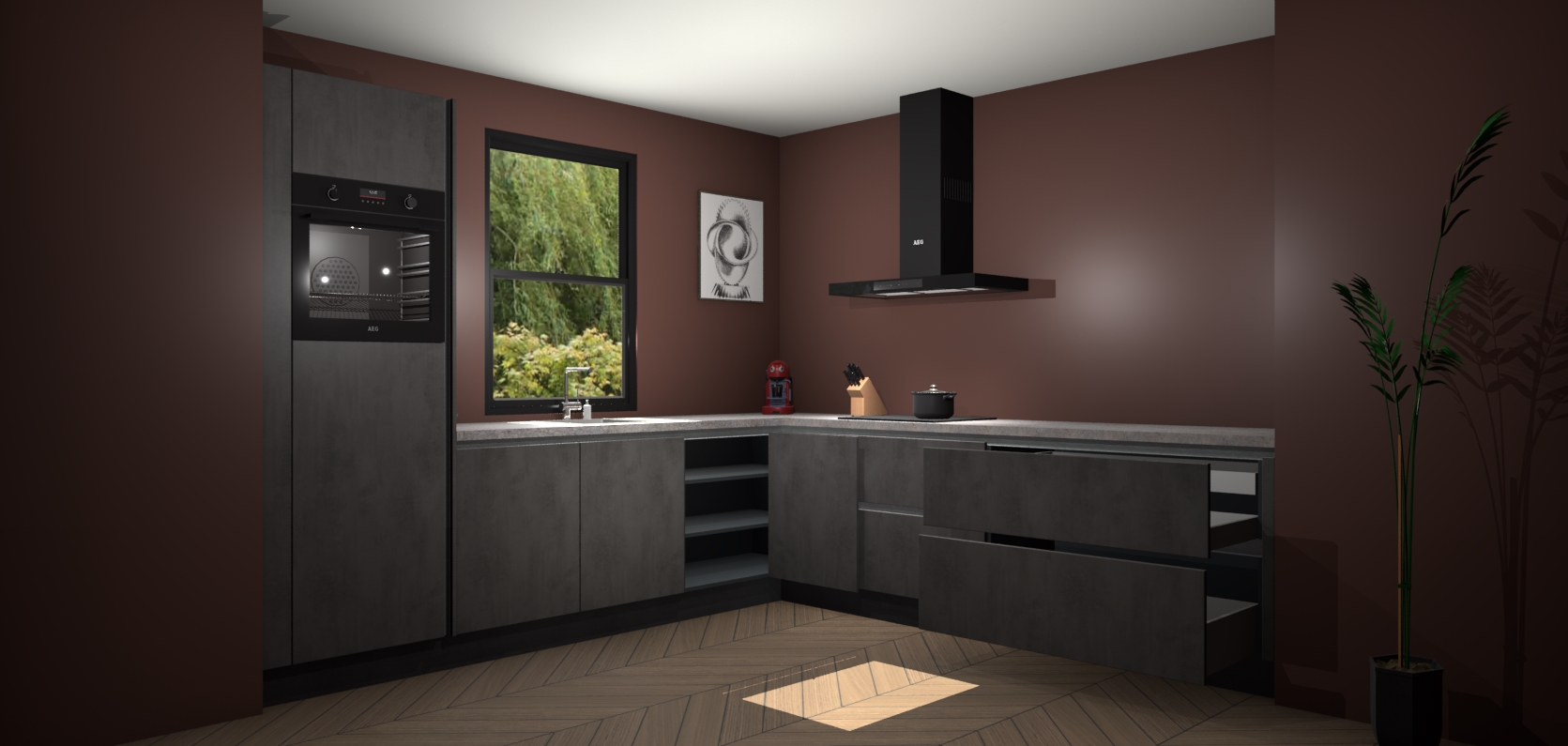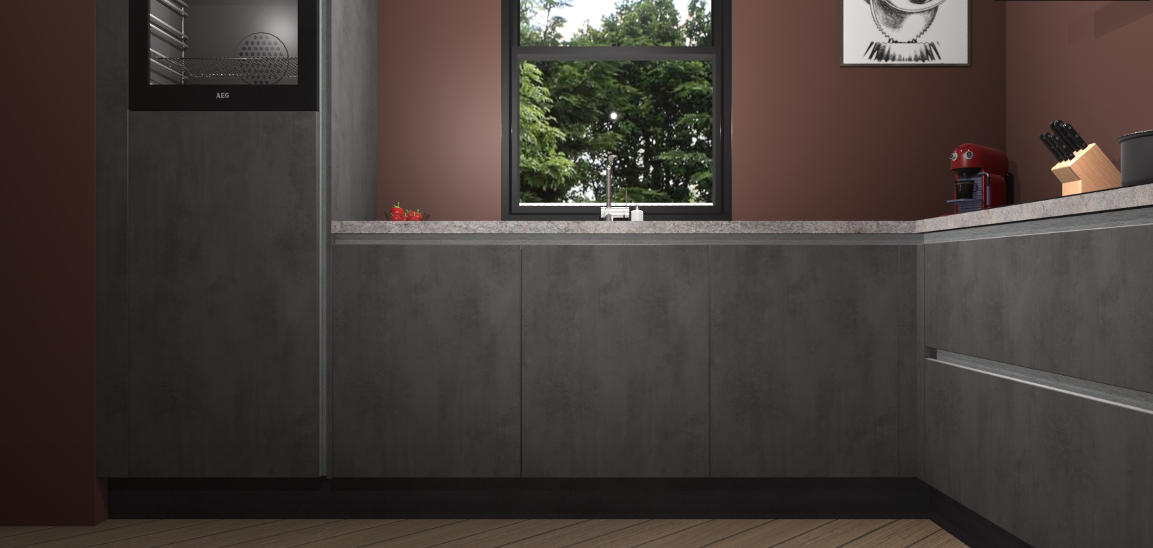 Welkom bij de Beton antraciet greeploze keuken Lublin. Deze prachtige keuken zal de komende jaren het middelpunt van de belangstelling in uw huis zijn. Uitgerust met vijf inbouwapparaten komt u nooit kookgereedschap tekort. Bovendien geeft de warme houtlook elke ruimte een uitnodigende en tijdloze uitstraling.