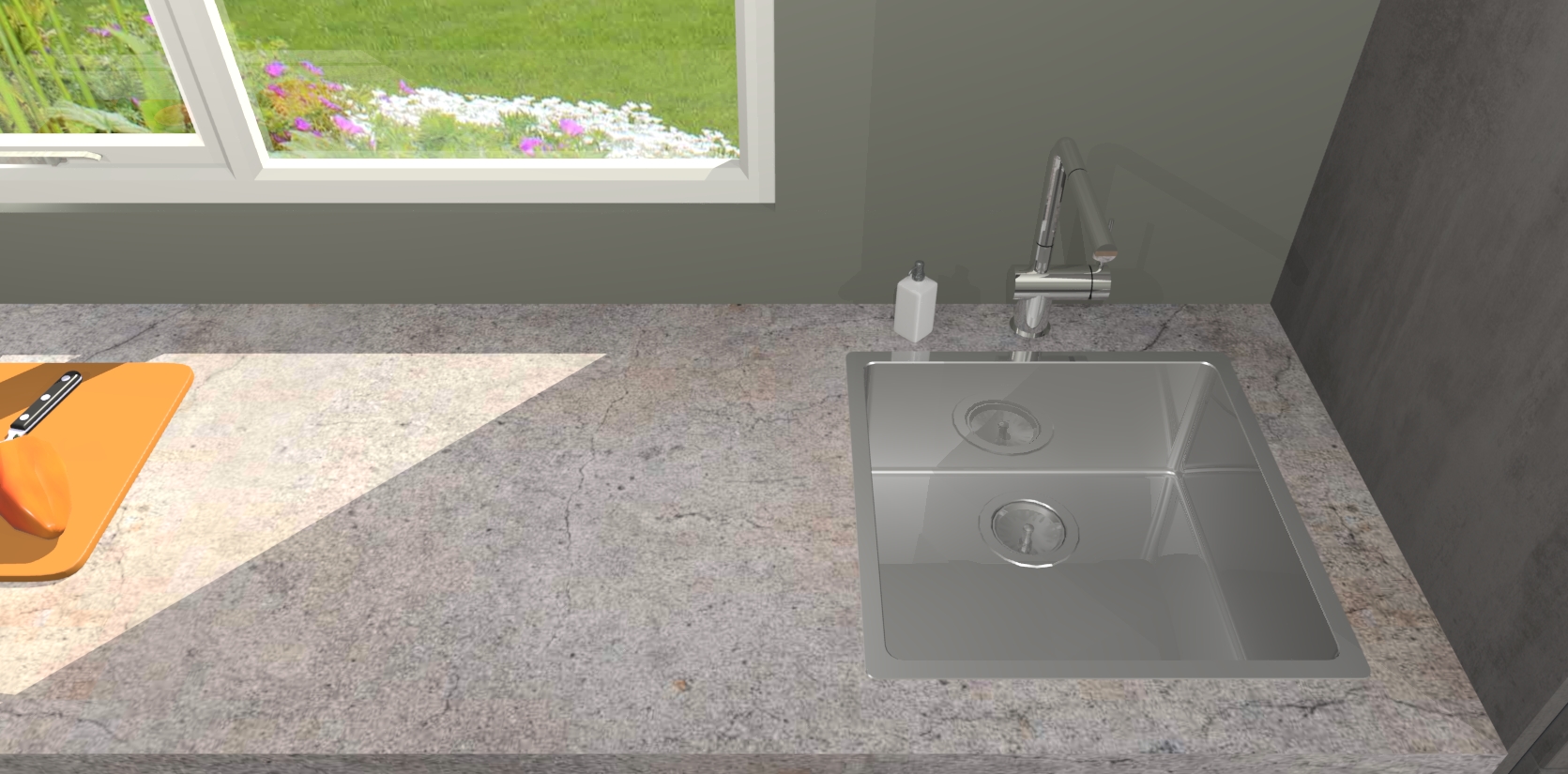 - De spoelbak is nog niet in gevreesd. Dit dient tijdens het werk gedaan te worden