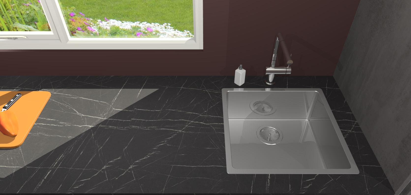 • De spoelbak is nog niet in gevreesd. Dit dient tijdens het werk gedaan te worden