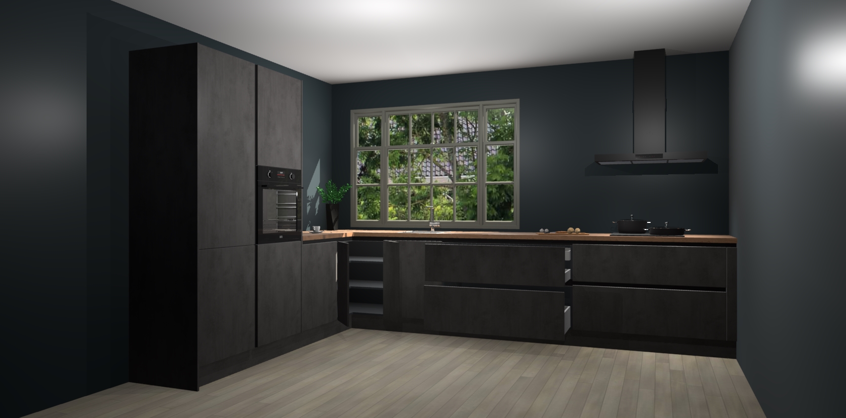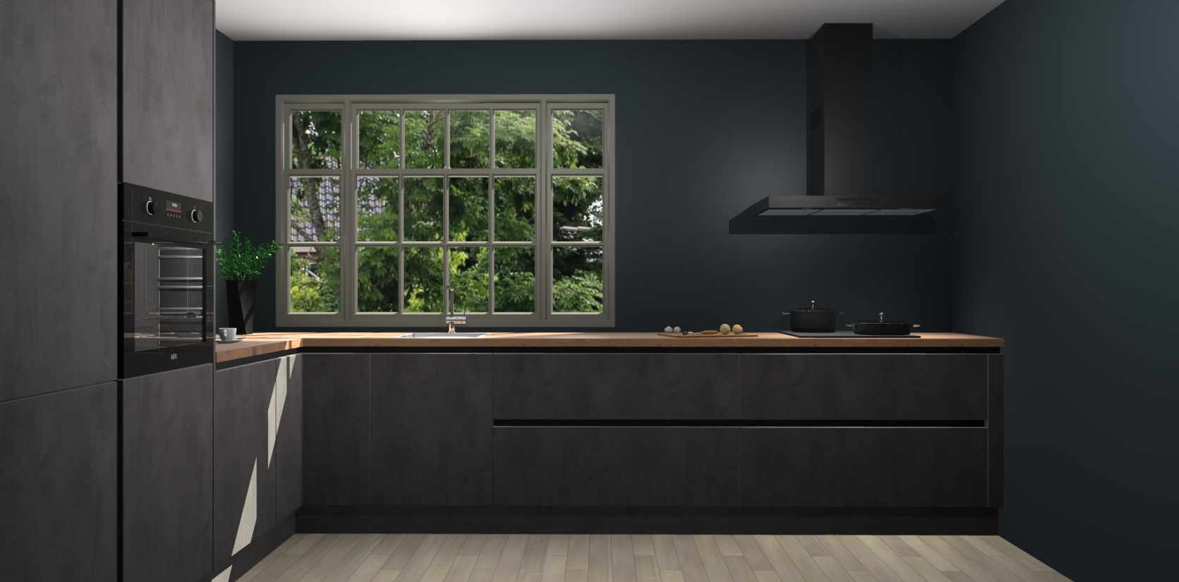 Kom dichtbij de perfecte keuken van uw dromen met de Beton Antraciet greeploze keuken Malaga. Met een prachtige houtlook en eigentijds ontwerp, straalt deze keuken warmte en sfeer uit. Of u nu liefhebber bent van traditionele of moderne stijlen, er is genoeg ruimte om aan al uw behoeften te voldoen.