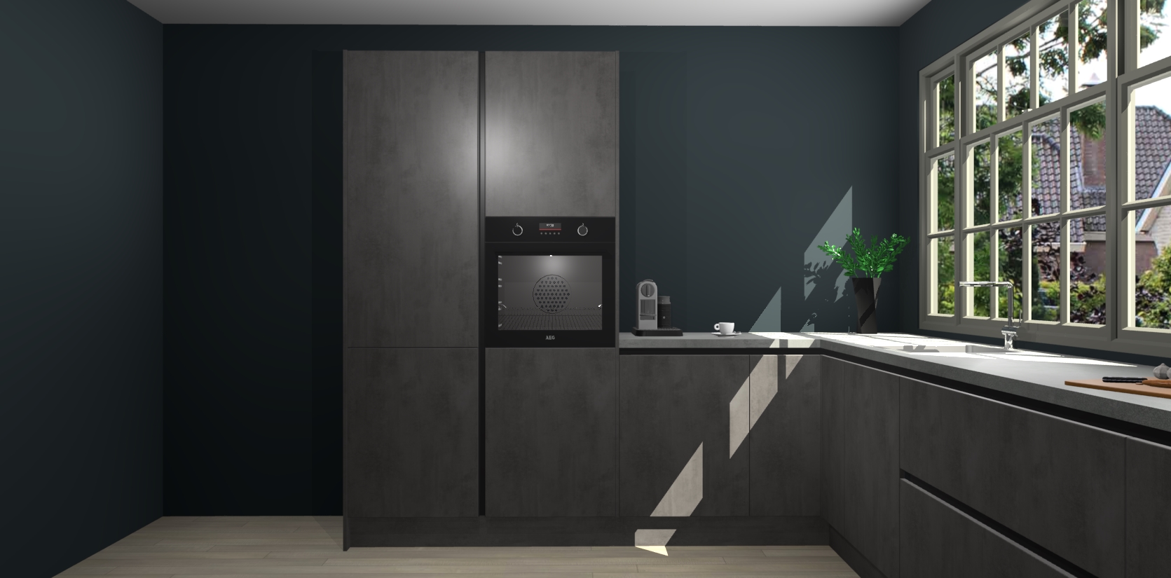 Heeft u nog apparatuur nodig? Geen probleem: de Beton Antraciet greeploze keuken Malaga bevat vijf ingebouwde apparaten - een oven, inductiekookplaat, afzuigkap, vaatwasser en koelkast - die gemakkelijk kunnen worden bijgewerkt naar AEG na bestelling. En als dat nog niet genoeg is; onze kasten worden pre-geassembleerd geleverd en zijn verkrijgbaar tegen een vastgeroeste lage prijs! U hoeft nooit meer te zoeken naar goede kwaliteit en service want onze producten hebben echt Duitse kwaliteit.