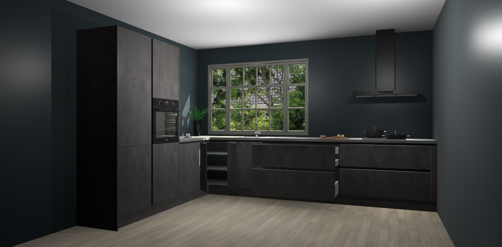 Kom dichtbij de perfecte keuken van uw dromen met de Beton Antraciet greeploze keuken Malaga. Met een prachtige houtlook en eigentijds ontwerp, straalt deze keuken warmte en sfeer uit. Of u nu liefhebber bent van traditionele of moderne stijlen, er is genoeg ruimte om aan al uw behoeften te voldoen.