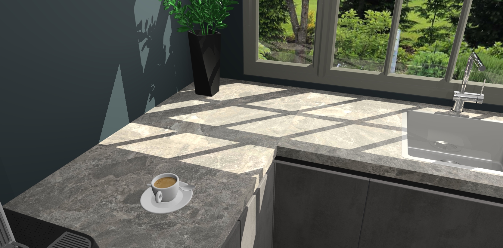 - Bij een hoekwerkblad zijn de hoeken in gevreesd en op maat gemaakt
