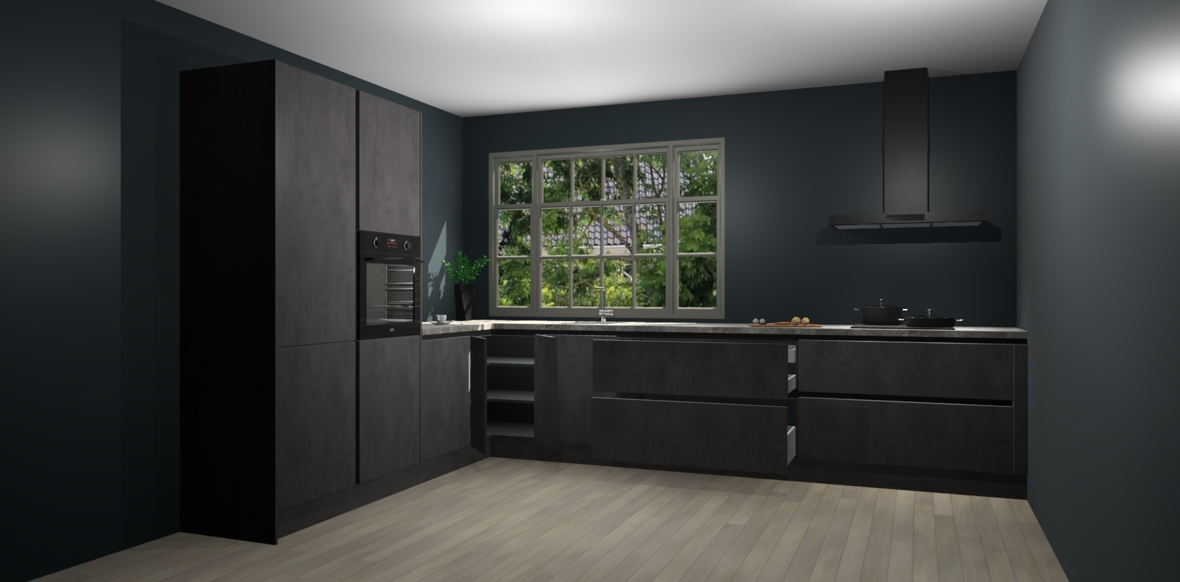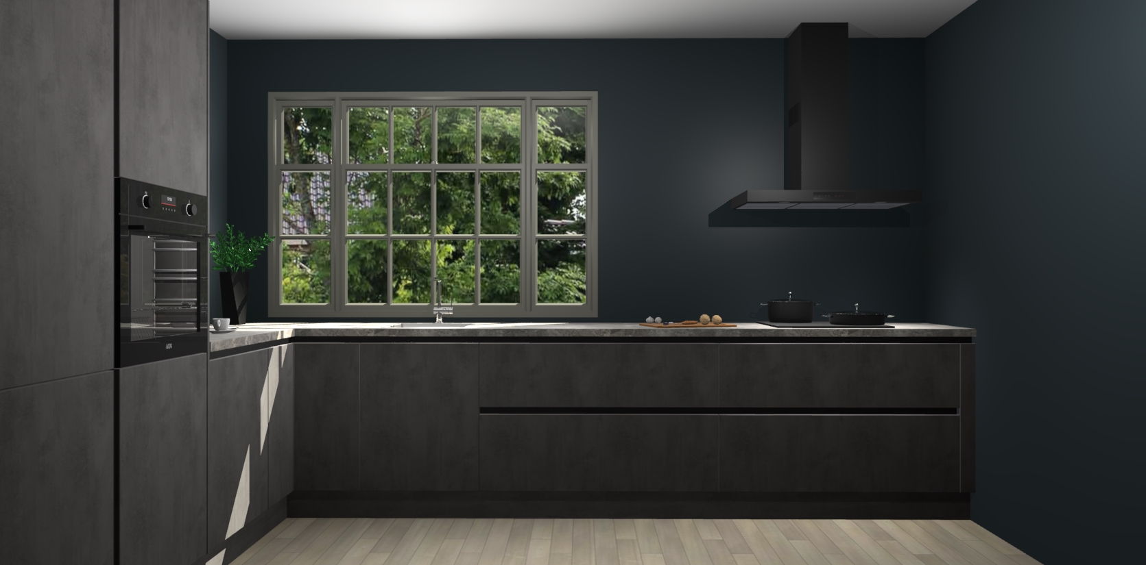 Kom dichtbij de perfecte keuken van uw dromen met de Beton Antraciet greeploze keuken Malaga. Met een prachtige houtlook en eigentijds ontwerp, straalt deze keuken warmte en sfeer uit. Of u nu liefhebber bent van traditionele of moderne stijlen, er is genoeg ruimte om aan al uw behoeften te voldoen.