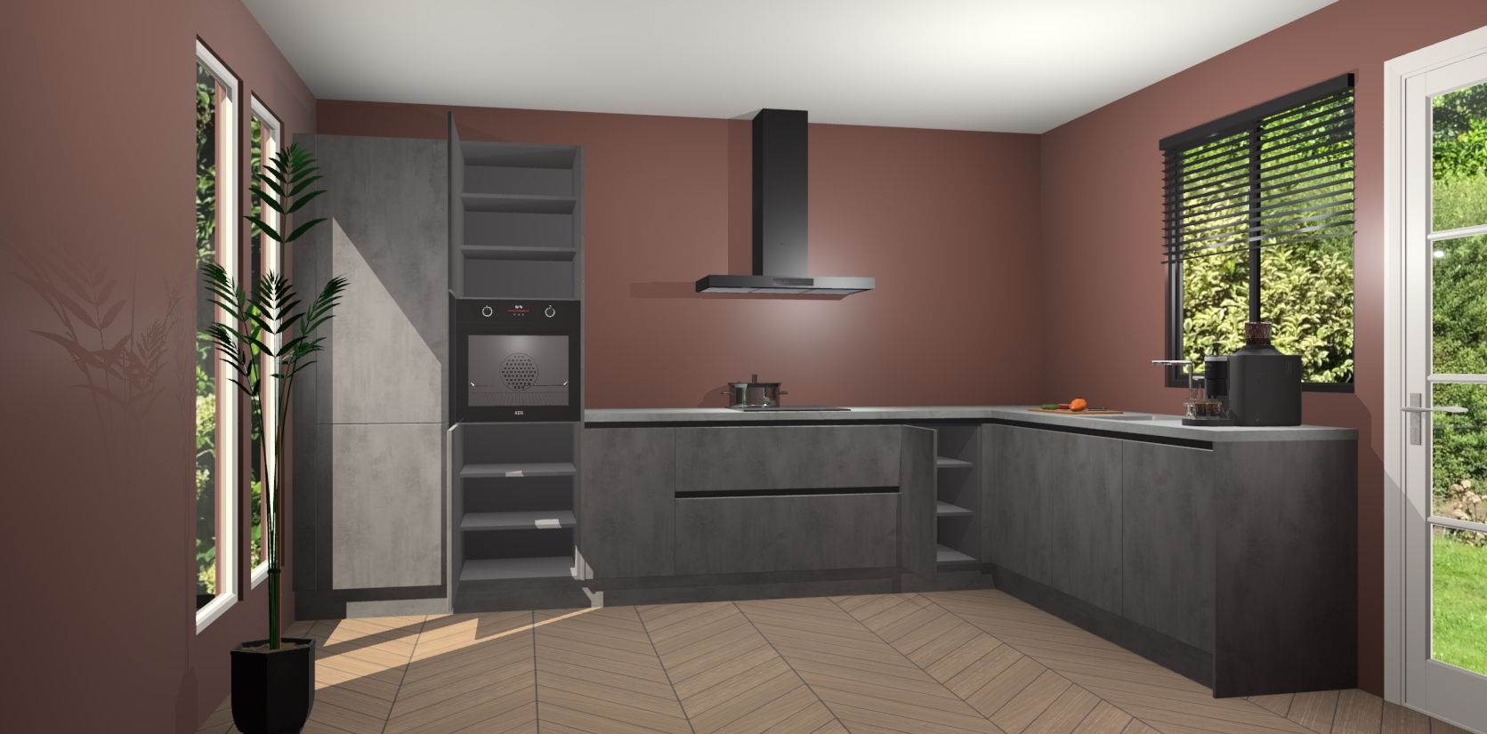 Met een modern, tijdloos design en ruime opslagruimte, zult u zich in no-time thuis voelen in uw nieuwe keuken. Uw leven wordt eenvoudiger met de soft-close deuren die voor het ultieme stille comfort zorgen - geen geluid dat u stoort terwijl u kookt. Ook is de keuken voorzien van 5 ingebouwde apparaten: een oven, inductie kookplaat, afzuigkap, vaatwasser en koelkast. Deze kunnen gemakkelijk na bestelling worden bijgewerkt naar AEG - waardoor uw luxe ervaring compleet is.