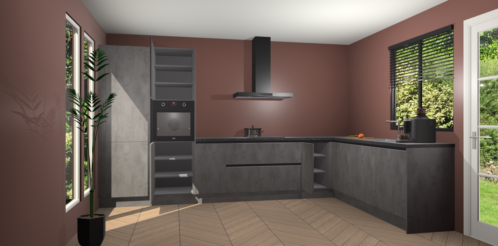 Met een modern, tijdloos design en ruime opslagruimte, zult u zich in no-time thuis voelen in uw nieuwe keuken. Uw leven wordt eenvoudiger met de soft-close deuren die voor het ultieme stille comfort zorgen - geen geluid dat u stoort terwijl u kookt. Ook is de keuken voorzien van 5 ingebouwde apparaten: een oven, inductie kookplaat, afzuigkap, vaatwasser en koelkast. Deze kunnen gemakkelijk na bestelling worden bijgewerkt naar AEG - waardoor uw luxe ervaring compleet is.