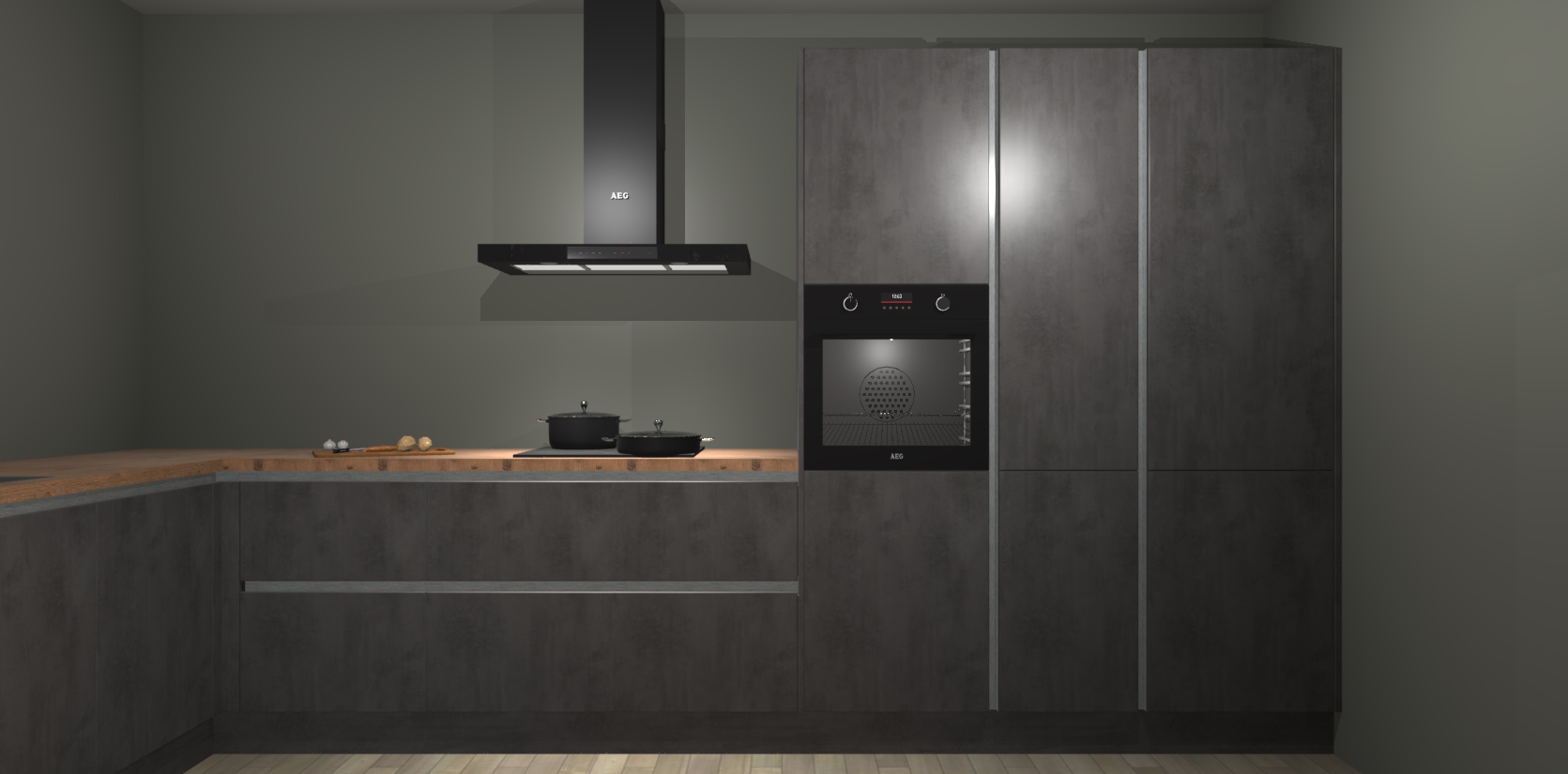 Welkom bij de beton antraciet greeploze keuken Nuuk. Deze prachtige keuken zal de komende jaren het middelpunt van de belangstelling in uw huis zijn. Uitgerust met vijf inbouwapparaten komt u nooit kookgereedschap tekort.