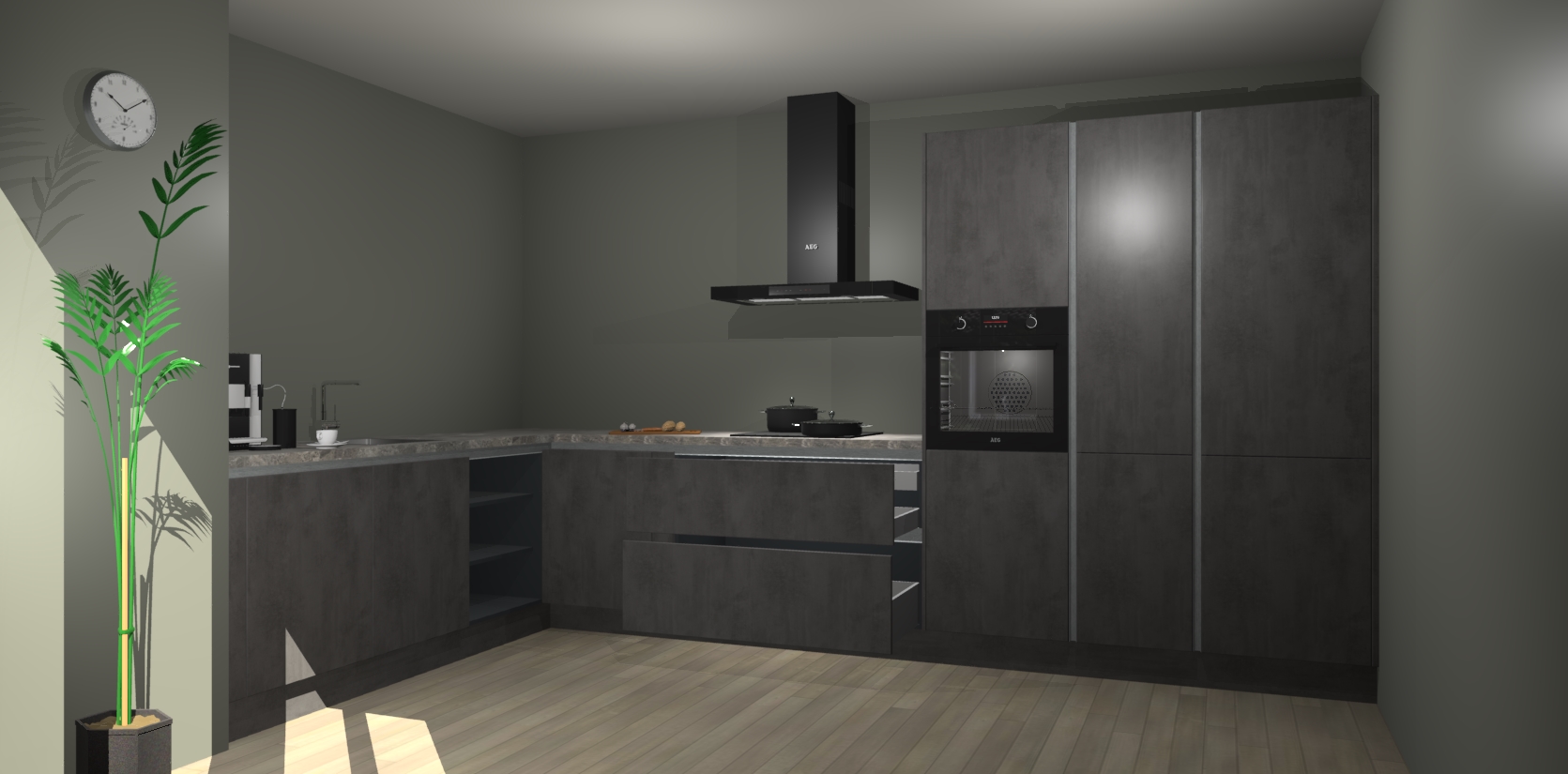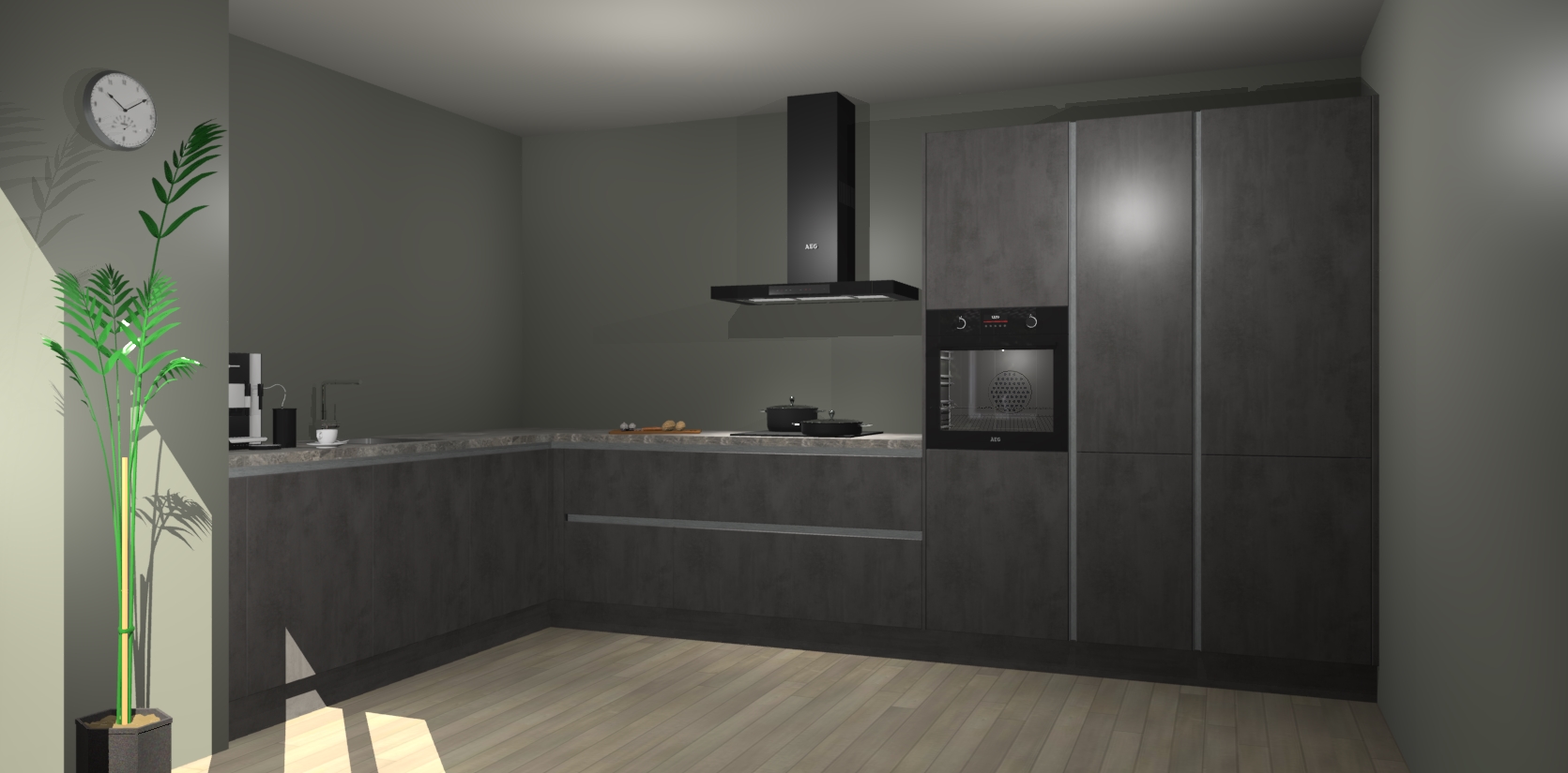 Welkom bij de beton antraciet greeploze keuken Nuuk. Deze prachtige keuken zal de komende jaren het middelpunt van de belangstelling in uw huis zijn. Uitgerust met vijf inbouwapparaten komt u nooit kookgereedschap tekort.