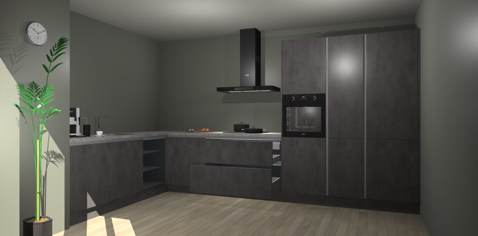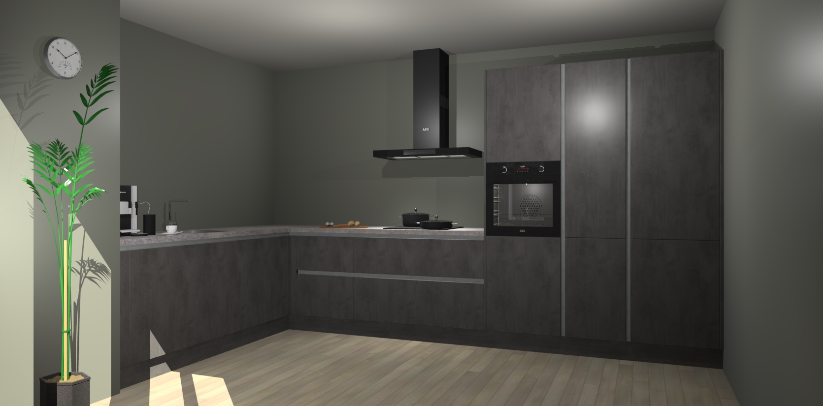 Welkom bij de beton antraciet greeploze keuken Nuuk. Deze prachtige keuken zal de komende jaren het middelpunt van de belangstelling in uw huis zijn. Uitgerust met vijf inbouwapparaten komt u nooit kookgereedschap tekort.