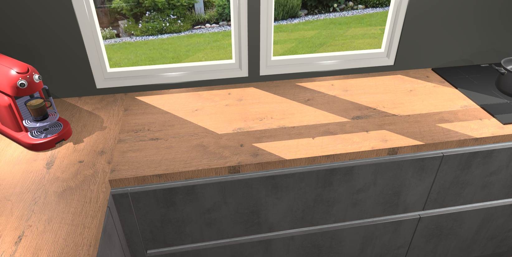 - Bij een hoekwerkblad zijn de hoeken in gevreesd en op maat gemaakt
