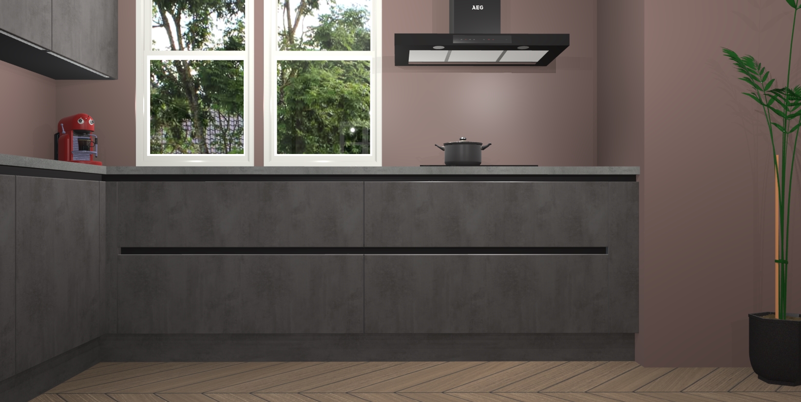 Beton Antraciet greeploze keuken Opole zal u de adem benemen met zijn moderne en strakke look!