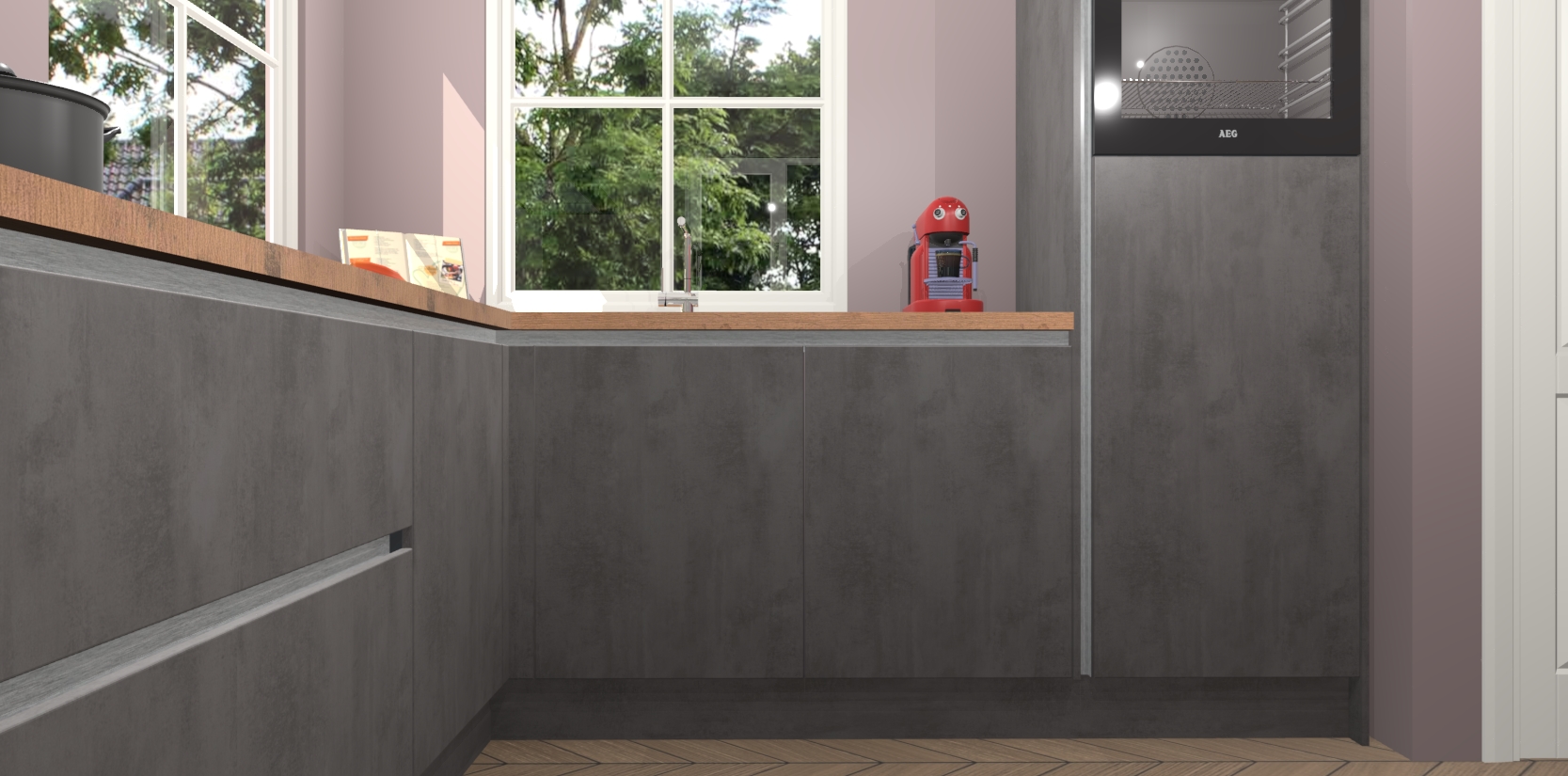 De Beton Antraciet greeploze keuken Pai bevat vijf essentiële inbouwapparaten - een oven, inductiekookplaat, afzuigkap, vaatwasser en koelkast - zodat u er na levering meteen in kunt. Voor de slimme kopers die weten dat apparaten vaak het verschil kunnen maken tussen functioneel en luxueus, bieden we eenvoudige upgradeopties naar AEG, van oven naar combimagnetron na bestelling of naar een kookplaat met geïntrigeerde afzuiging. En met onze vaste lage prijs en snelle levering binnen zeven weken vanaf de orderbevestiging hoeft u zich geen zorgen te maken over verborgen kosten of lange levertijden die uw droomkeuken kunnen vertragen.