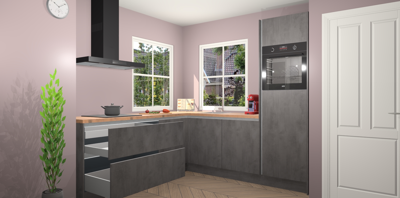 U krijgt niet alleen een prachtige hoekkeuken voor een onklopbare prijs - met details zoals soft close deuren om uw zintuigen te verwennen - maar u investeert ook in vakmanschap dat lang meegaat. Met zijn afgeronde randen is elk stuk met precisie en passie ontworpen om elegantie in uw ruimte te brengen. Eenvoudigweg gastvrijheid delen met familie en vrienden wordt mogelijk met de Beton Antraciet greeploze keuken Pai! Elegant design gecombineerd met hoogwaardige materialen en een betaalbaar prijskaartje maken deze hoekkeuken de perfecte keuze voor slimme huiseigenaren die op zoek zijn naar een superieure stijl die de tand des tijds zal doorstaan. Wacht niet: bestel uw nieuwe Beton Antraciet greeploze keuken Pai vandaag nog!