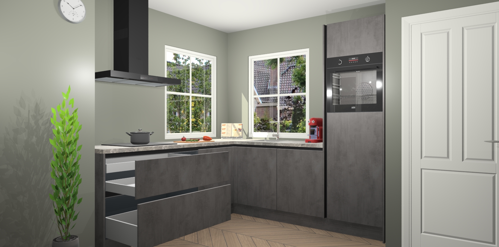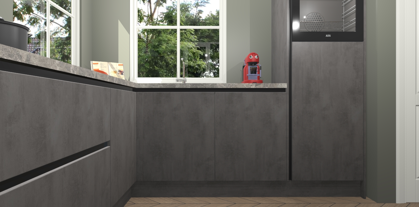 De Beton Antraciet greeploze keuken Pai bevat vijf essentiële inbouwapparaten - een oven, inductiekookplaat, afzuigkap, vaatwasser en koelkast - zodat u er na levering meteen in kunt. Voor de slimme kopers die weten dat apparaten vaak het verschil kunnen maken tussen functioneel en luxueus, bieden we eenvoudige upgradeopties naar AEG, van oven naar combimagnetron na bestelling of naar een kookplaat met geïntrigeerde afzuiging. En met onze vaste lage prijs en snelle levering binnen zeven weken vanaf de orderbevestiging hoeft u zich geen zorgen te maken over verborgen kosten of lange levertijden die uw droomkeuken kunnen vertragen.