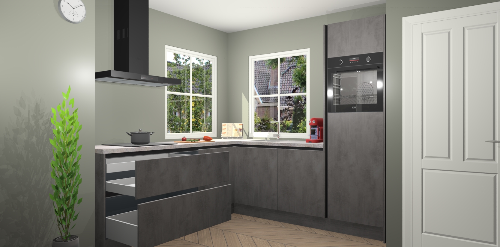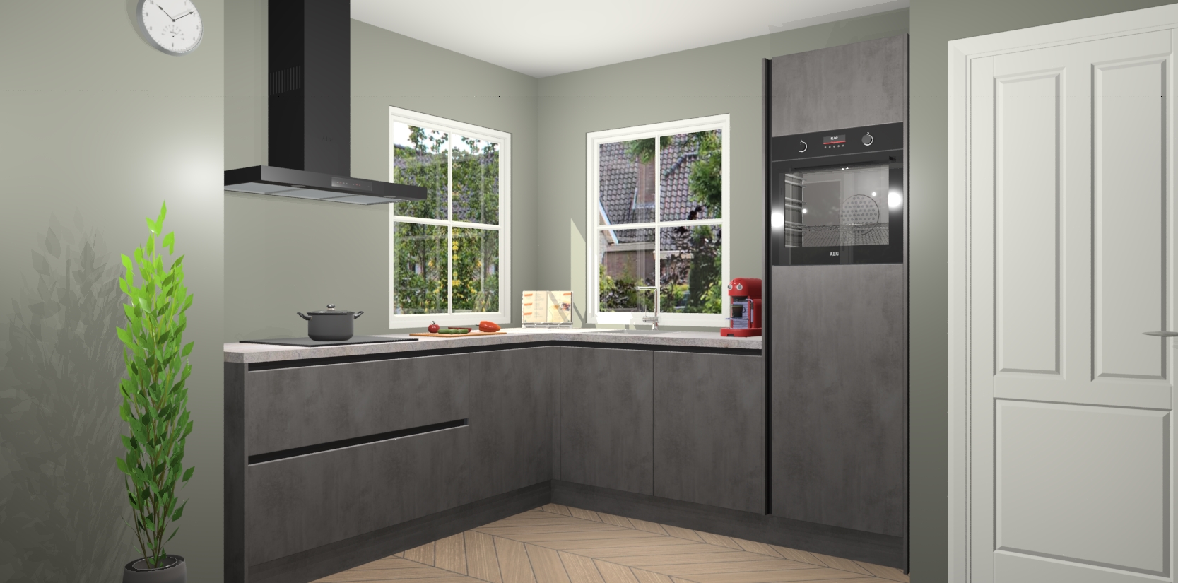 De Beton Antraciet greeploze keuken Pai bevat vijf essentiële inbouwapparaten - een oven, inductiekookplaat, afzuigkap, vaatwasser en koelkast - zodat u er na levering meteen in kunt. Voor de slimme kopers die weten dat apparaten vaak het verschil kunnen maken tussen functioneel en luxueus, bieden we eenvoudige upgradeopties naar AEG, van oven naar combimagnetron na bestelling of naar een kookplaat met geïntrigeerde afzuiging. En met onze vaste lage prijs en snelle levering binnen zeven weken vanaf de orderbevestiging hoeft u zich geen zorgen te maken over verborgen kosten of lange levertijden die uw droomkeuken kunnen vertragen.