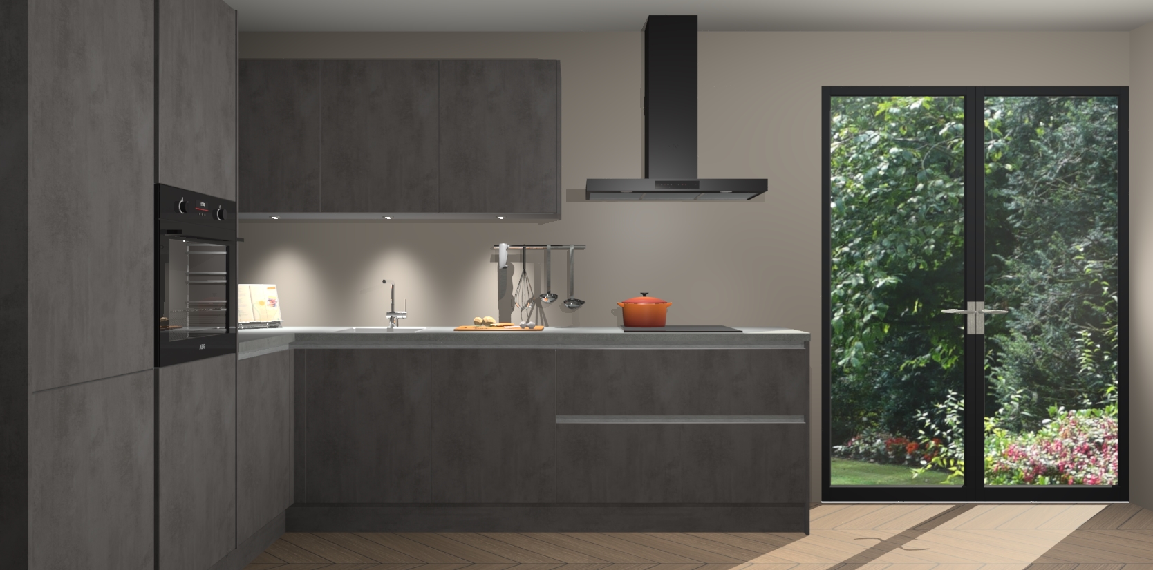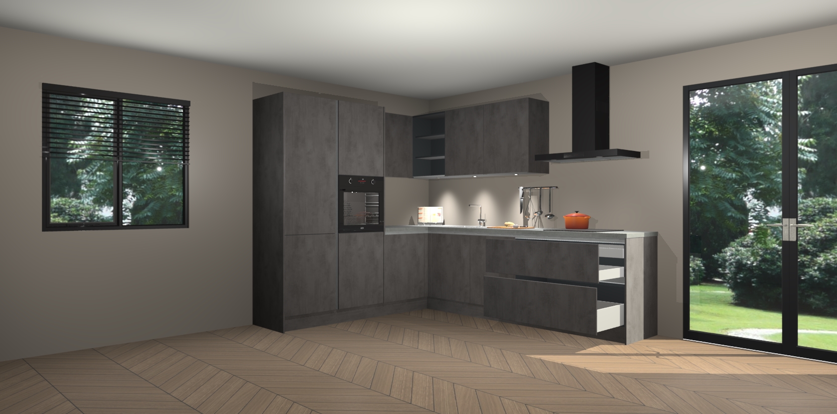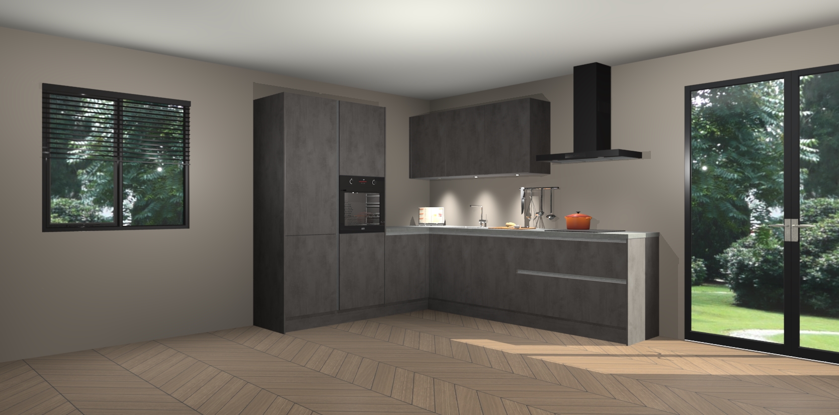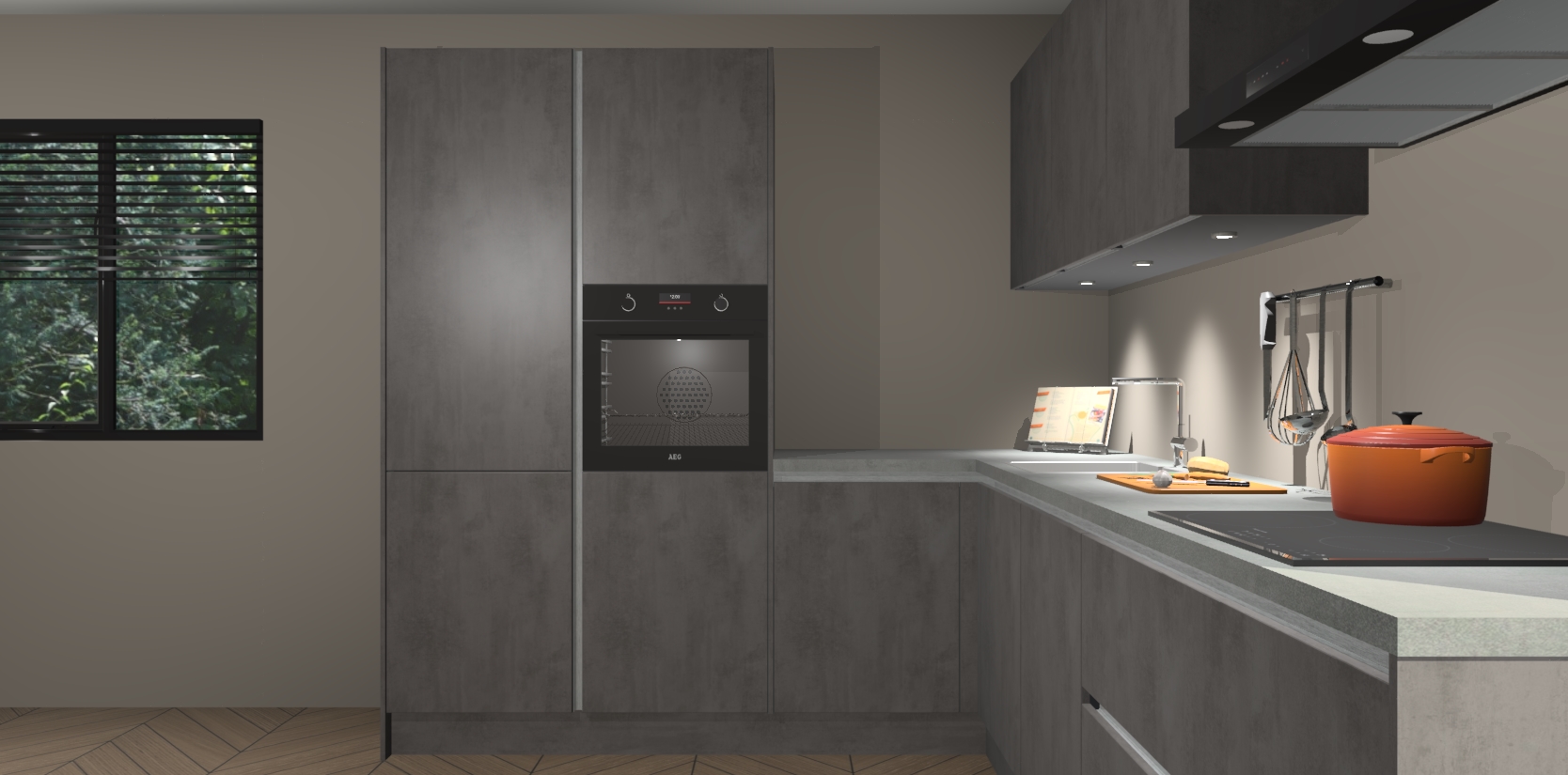 Maak kennis met de beton antraciet greeploze keuken Parla - de perfecte aanvulling voor uw moderne keuken! Ervaar tijdloos design, elegantie en een chique uitstraling met onze zwarte handgrepen, soft-close deuren en veel opbergruimte. Dit alles wordt aangeboden tegen een vaste lage prijs voor ongeëvenaarde Duitse keukenkwaliteit!