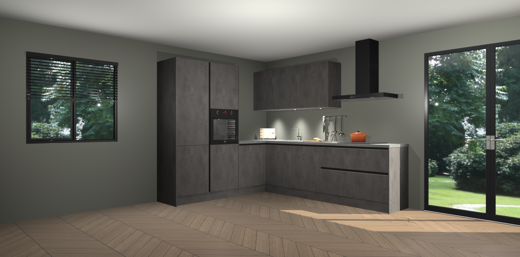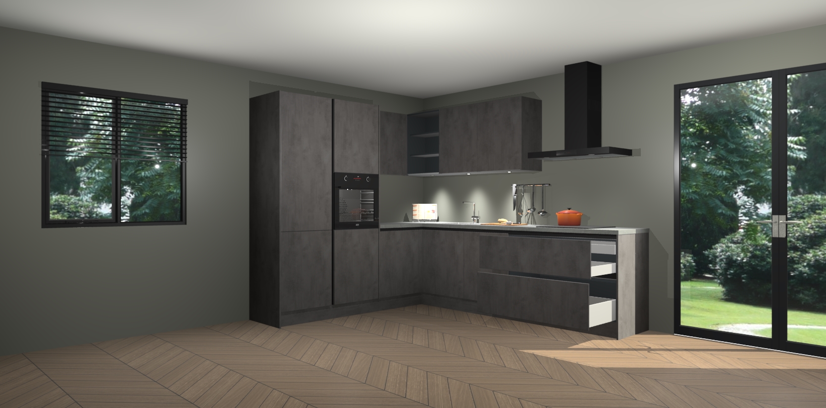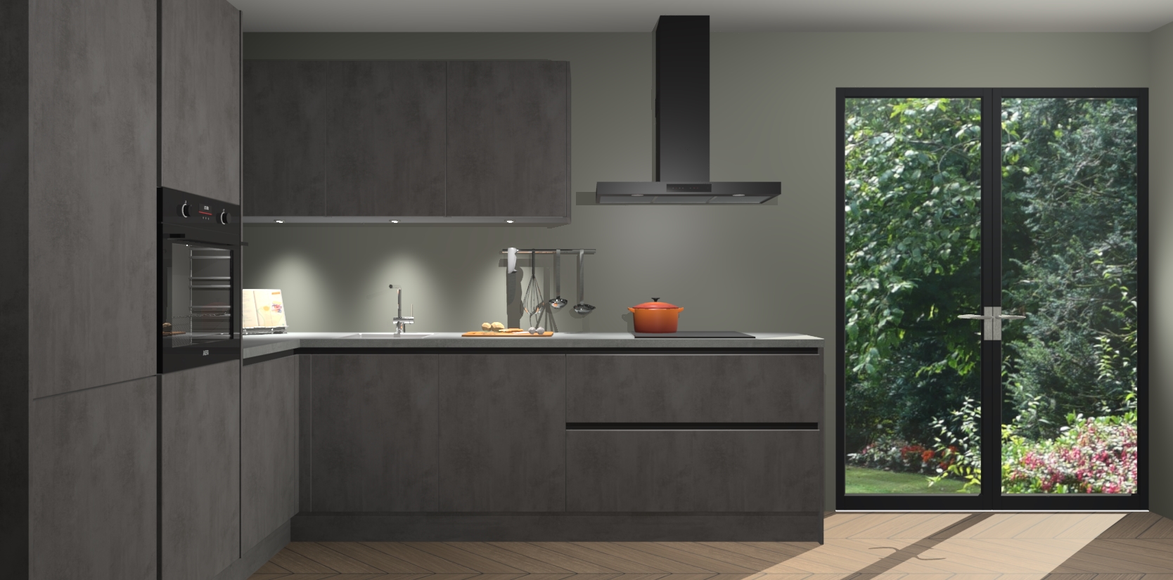 Maak kennis met de beton antraciet greeploze keuken Parla - de perfecte aanvulling voor uw moderne keuken! Ervaar tijdloos design, elegantie en een chique uitstraling met onze zwarte handgrepen, soft-close deuren en veel opbergruimte. Dit alles wordt aangeboden tegen een vaste lage prijs voor ongeëvenaarde Duitse keukenkwaliteit!