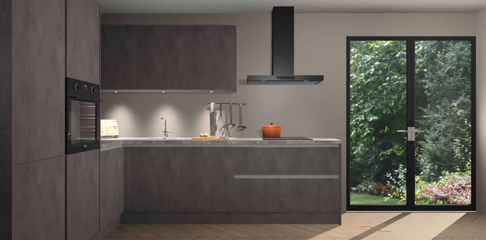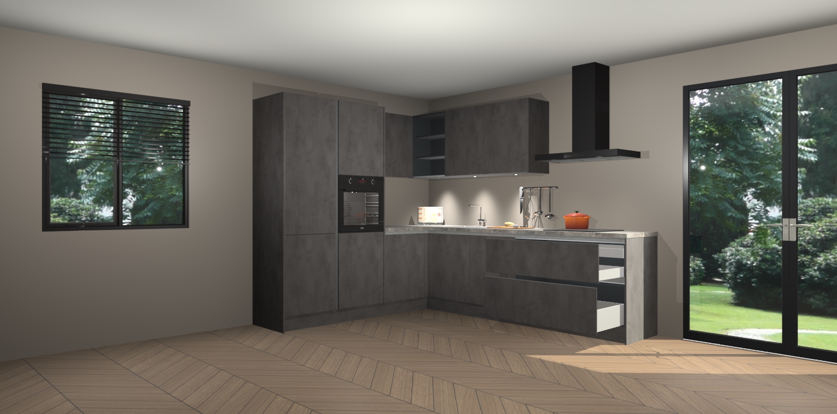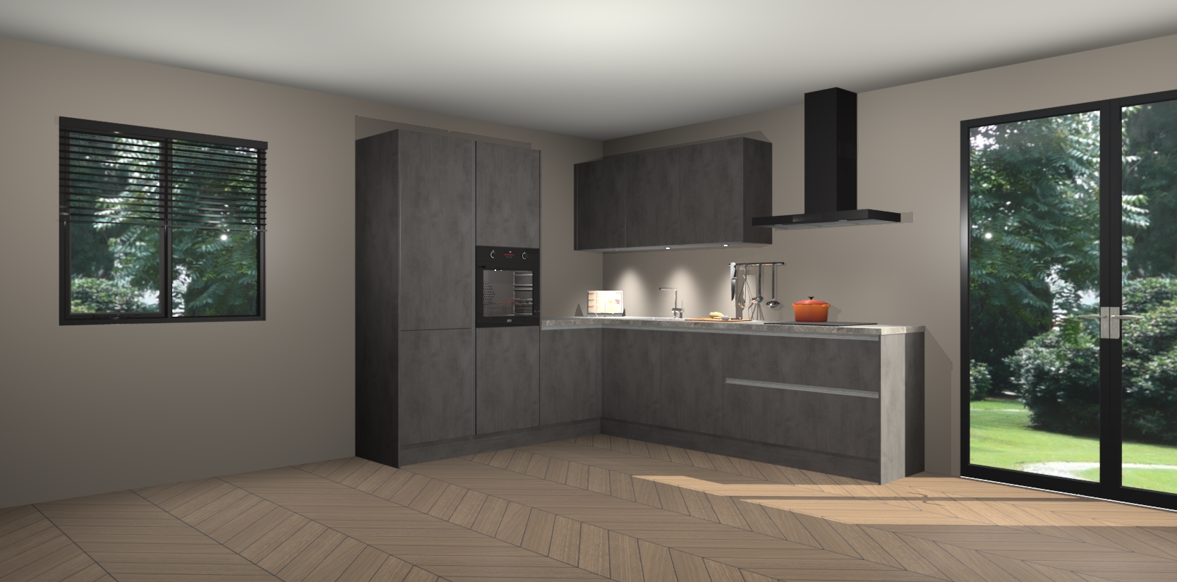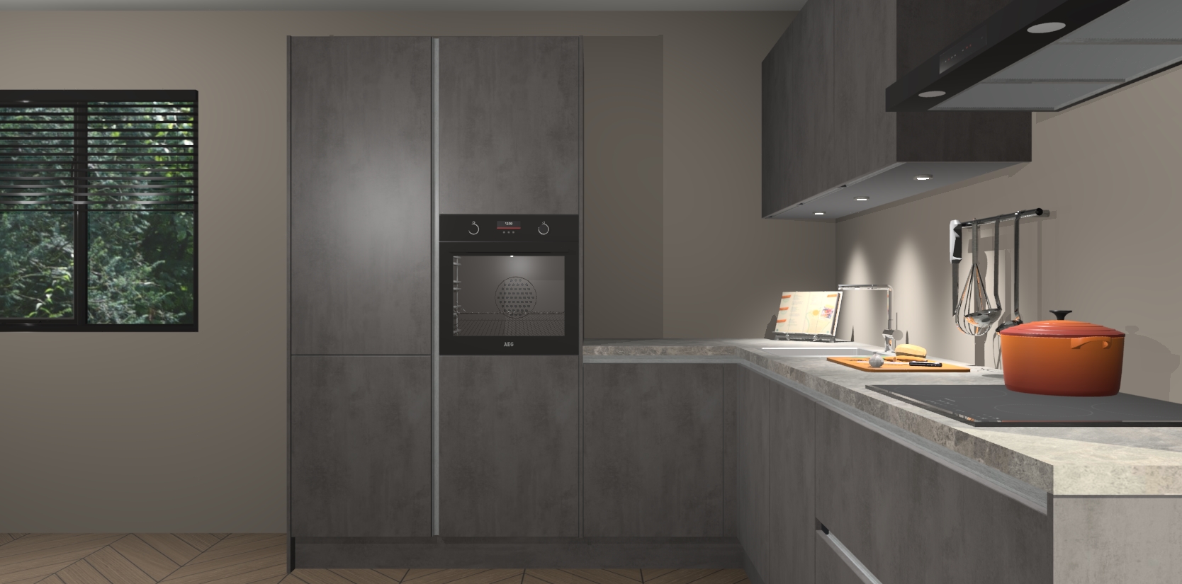 Maak kennis met de beton antraciet greeploze keuken Parla - de perfecte aanvulling voor uw moderne keuken! Ervaar tijdloos design, elegantie en een chique uitstraling met onze zwarte handgrepen, soft-close deuren en veel opbergruimte. Dit alles wordt aangeboden tegen een vaste lage prijs voor ongeëvenaarde Duitse keukenkwaliteit!