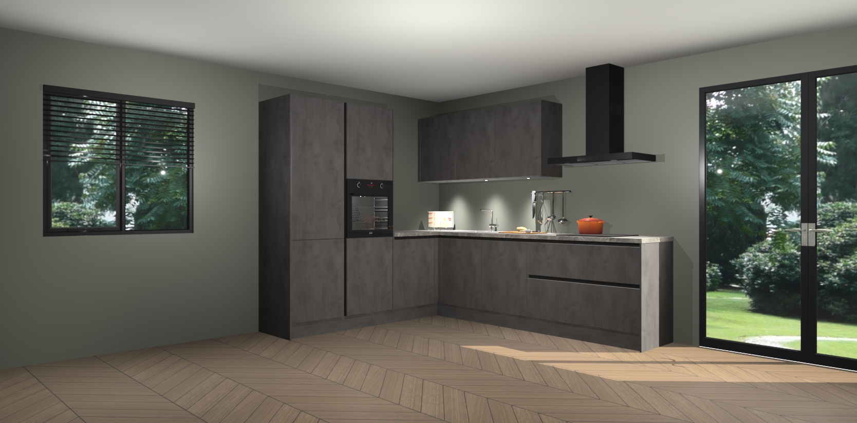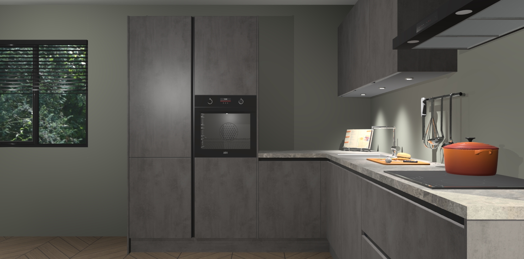 Maak kennis met de beton antraciet greeploze keuken Parla - de perfecte aanvulling voor uw moderne keuken! Ervaar tijdloos design, elegantie en een chique uitstraling met onze zwarte handgrepen, soft-close deuren en veel opbergruimte. Dit alles wordt aangeboden tegen een vaste lage prijs voor ongeëvenaarde Duitse keukenkwaliteit!