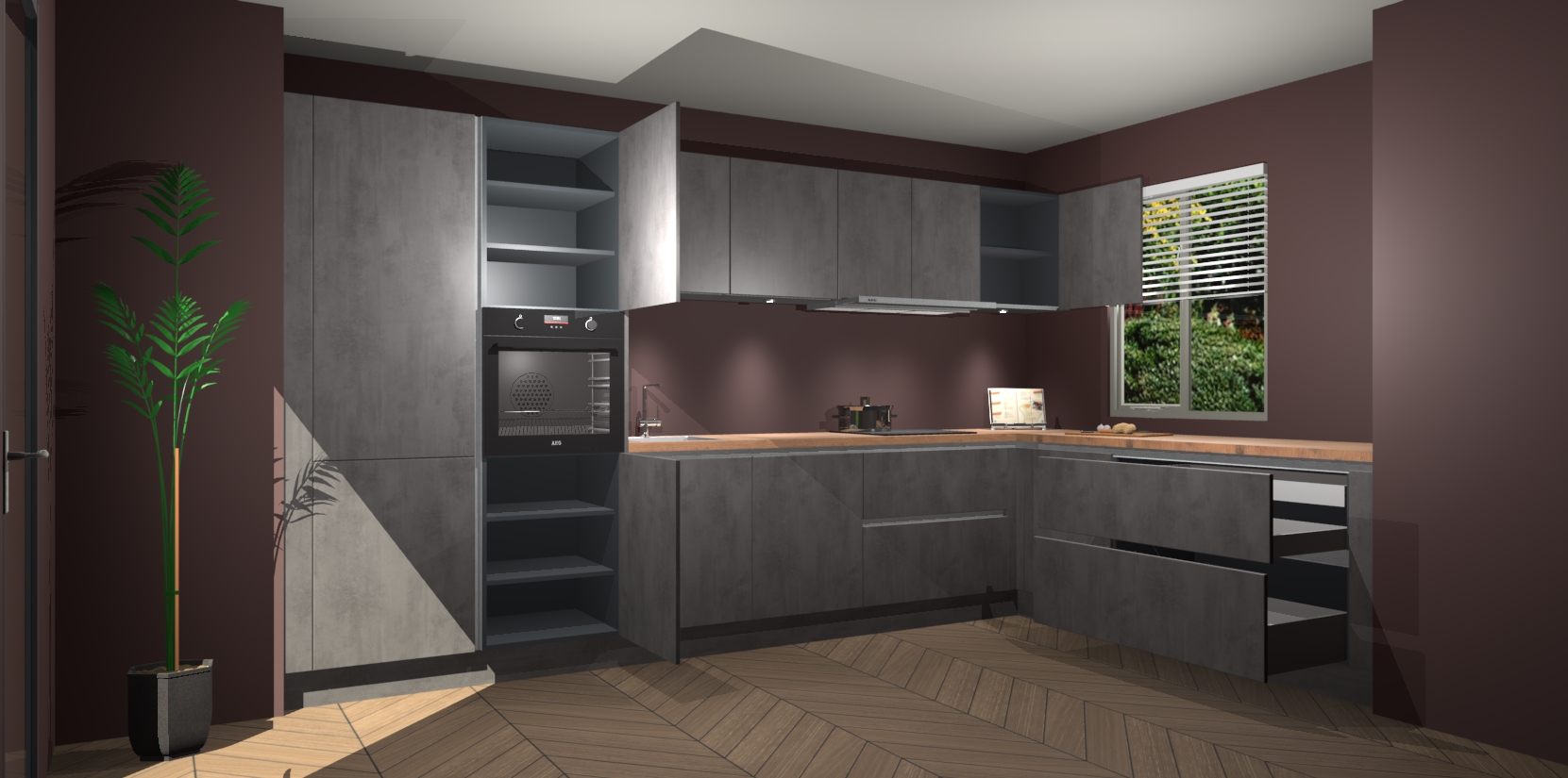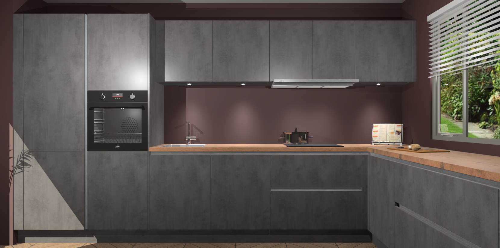 Verwelkom de natuurlijke warmte van de Beton Antraciet greeploze keuken Petten in uw huis. Deze prachtige hoekkeuken met zijn moderne design en warme houten look geeft u meer dan genoeg opbergruimte om uw comfortabel te voelen in uw keuken. Geniet van soft-close deuren die al uw gasten het gevoel zullen geven dat ze zich in een luxueuze ruimte bevinden.