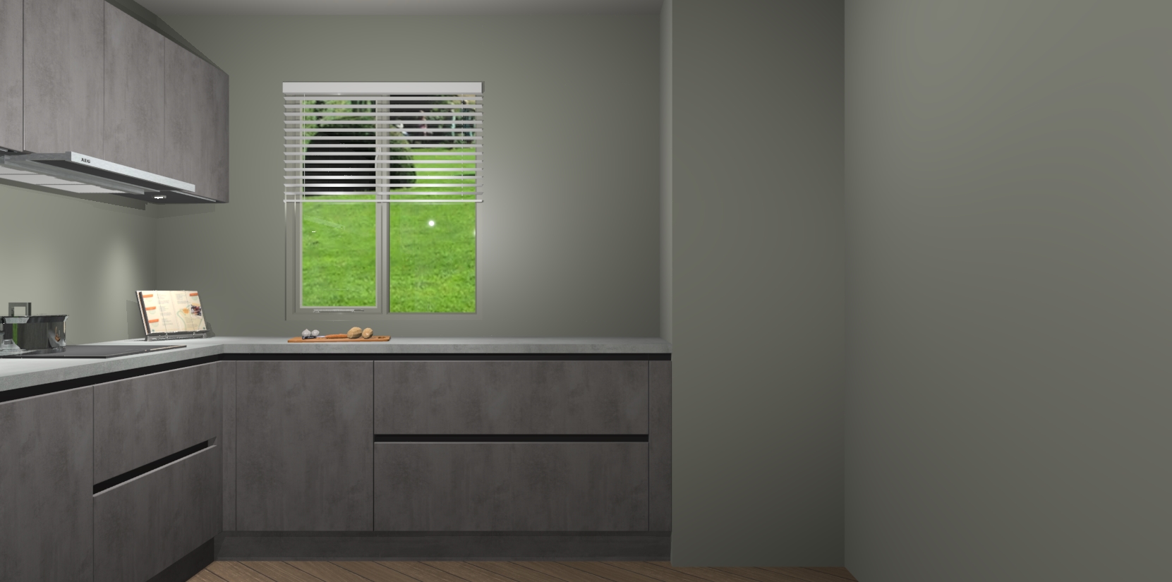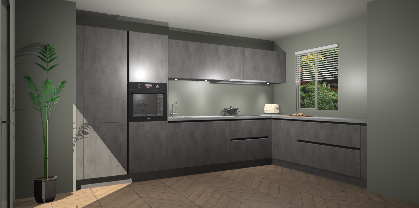 Verwelkom de natuurlijke warmte van de Beton Antraciet greeploze keuken Petten in uw huis. Deze prachtige hoekkeuken met zijn moderne design en warme houten look geeft u meer dan genoeg opbergruimte om uw comfortabel te voelen in uw keuken. Geniet van soft-close deuren die al uw gasten het gevoel zullen geven dat ze zich in een luxueuze ruimte bevinden.