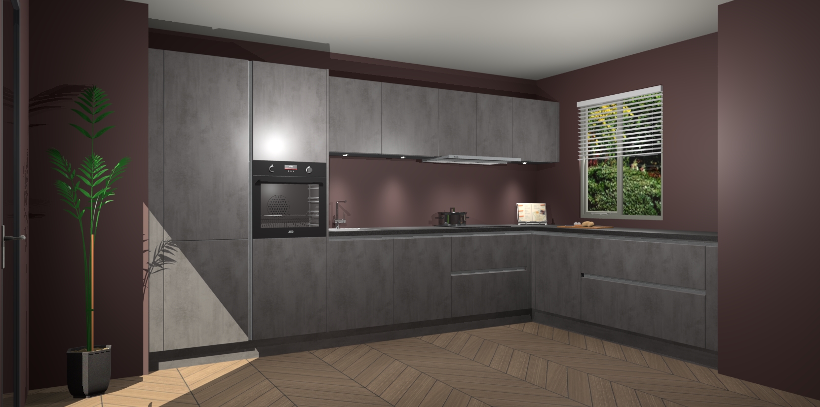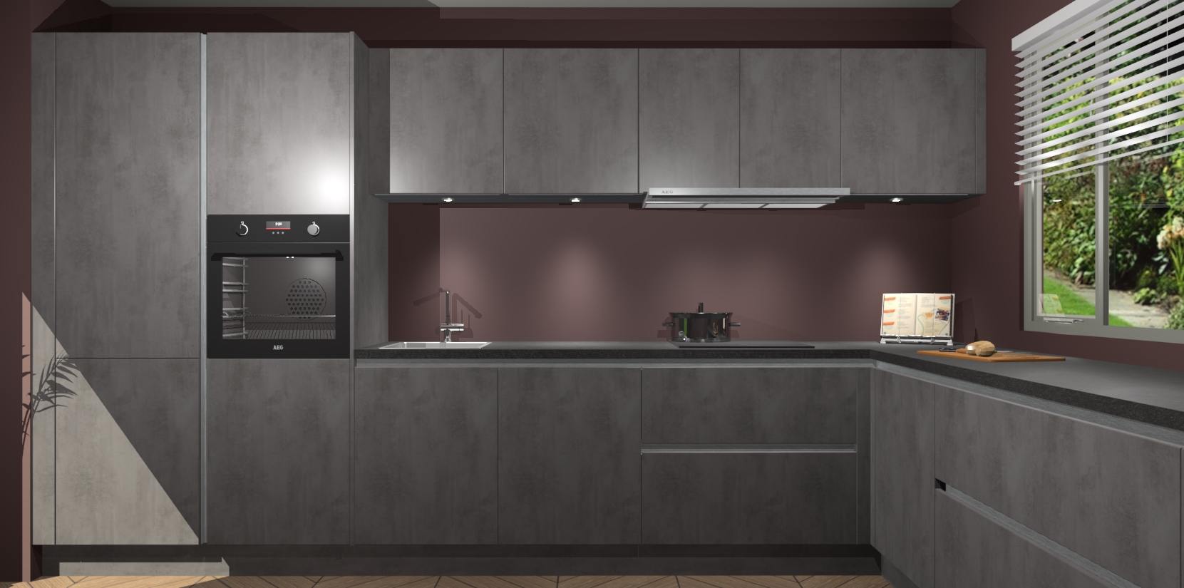 Verwelkom de natuurlijke warmte van de Beton Antraciet greeploze keuken Petten in uw huis. Deze prachtige hoekkeuken met zijn moderne design en warme houten look geeft u meer dan genoeg opbergruimte om uw comfortabel te voelen in uw keuken. Geniet van soft-close deuren die al uw gasten het gevoel zullen geven dat ze zich in een luxueuze ruimte bevinden.