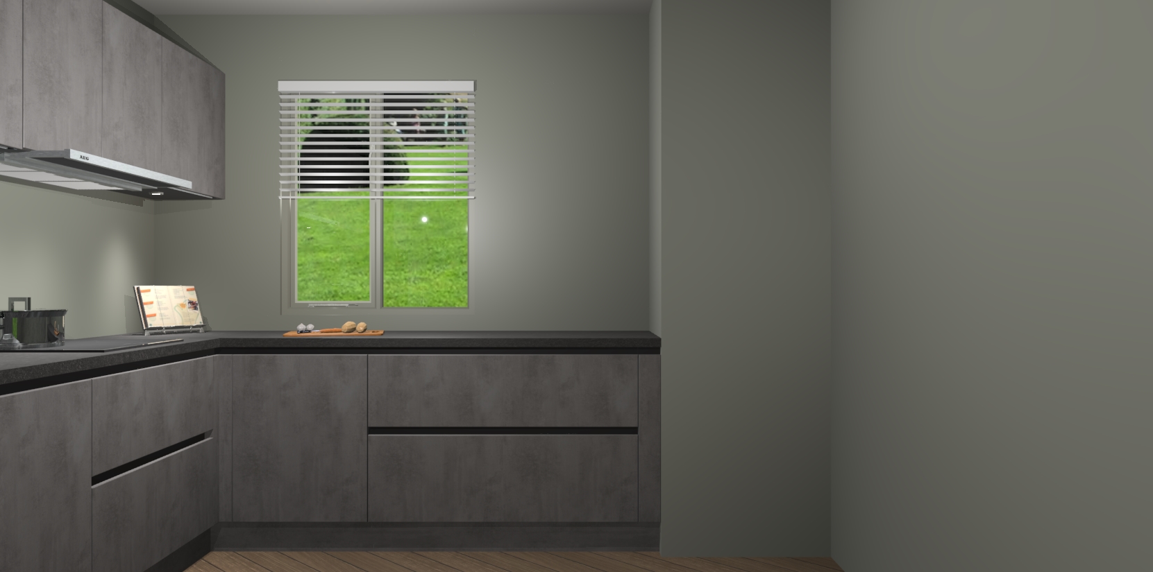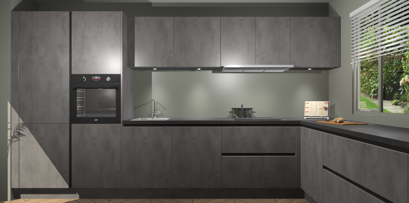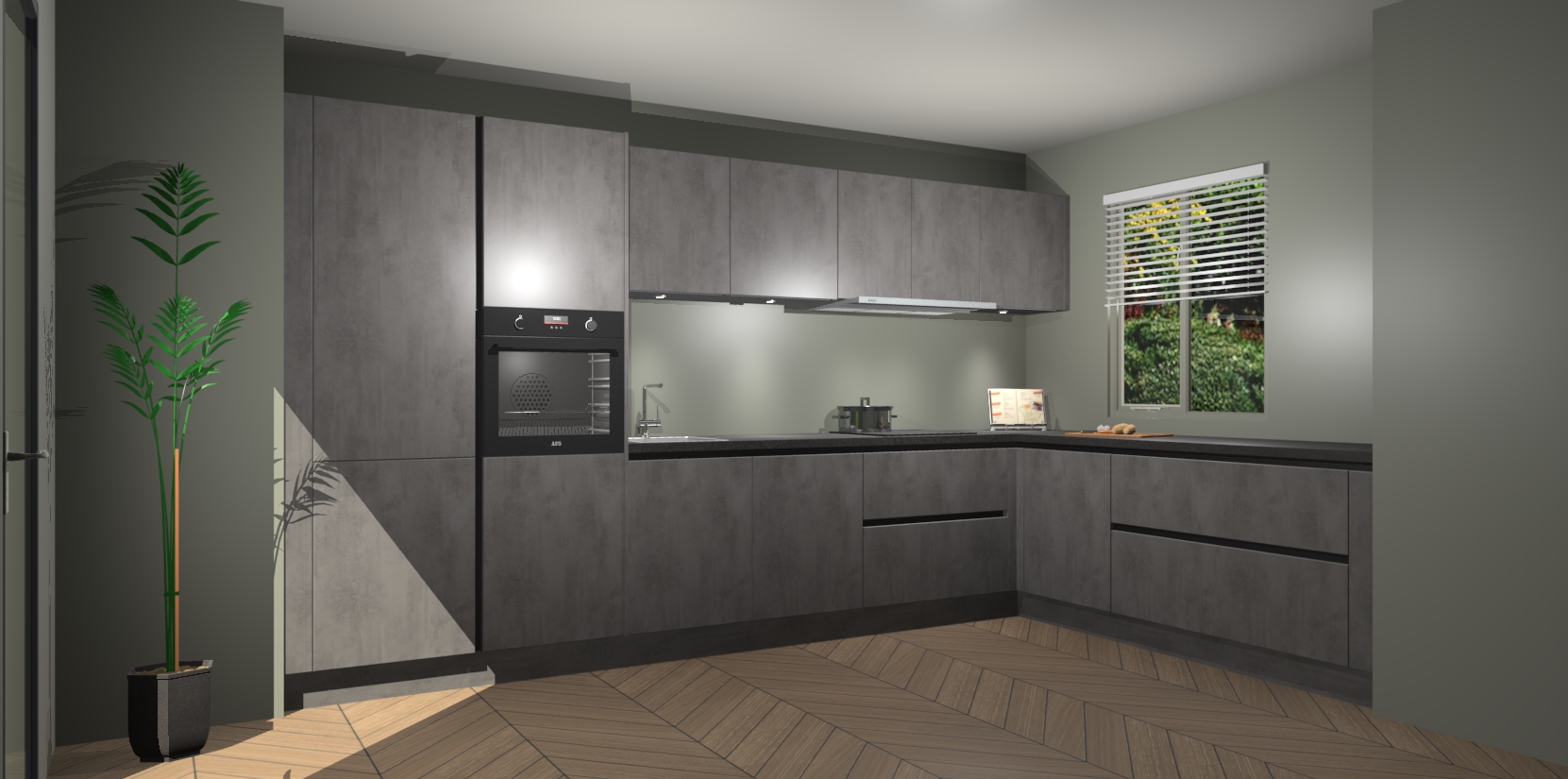 Verwelkom de natuurlijke warmte van de Beton Antraciet greeploze keuken Petten in uw huis. Deze prachtige hoekkeuken met zijn moderne design en warme houten look geeft u meer dan genoeg opbergruimte om uw comfortabel te voelen in uw keuken. Geniet van soft-close deuren die al uw gasten het gevoel zullen geven dat ze zich in een luxueuze ruimte bevinden.