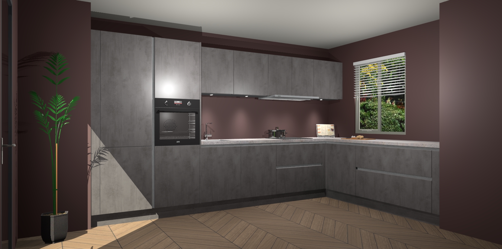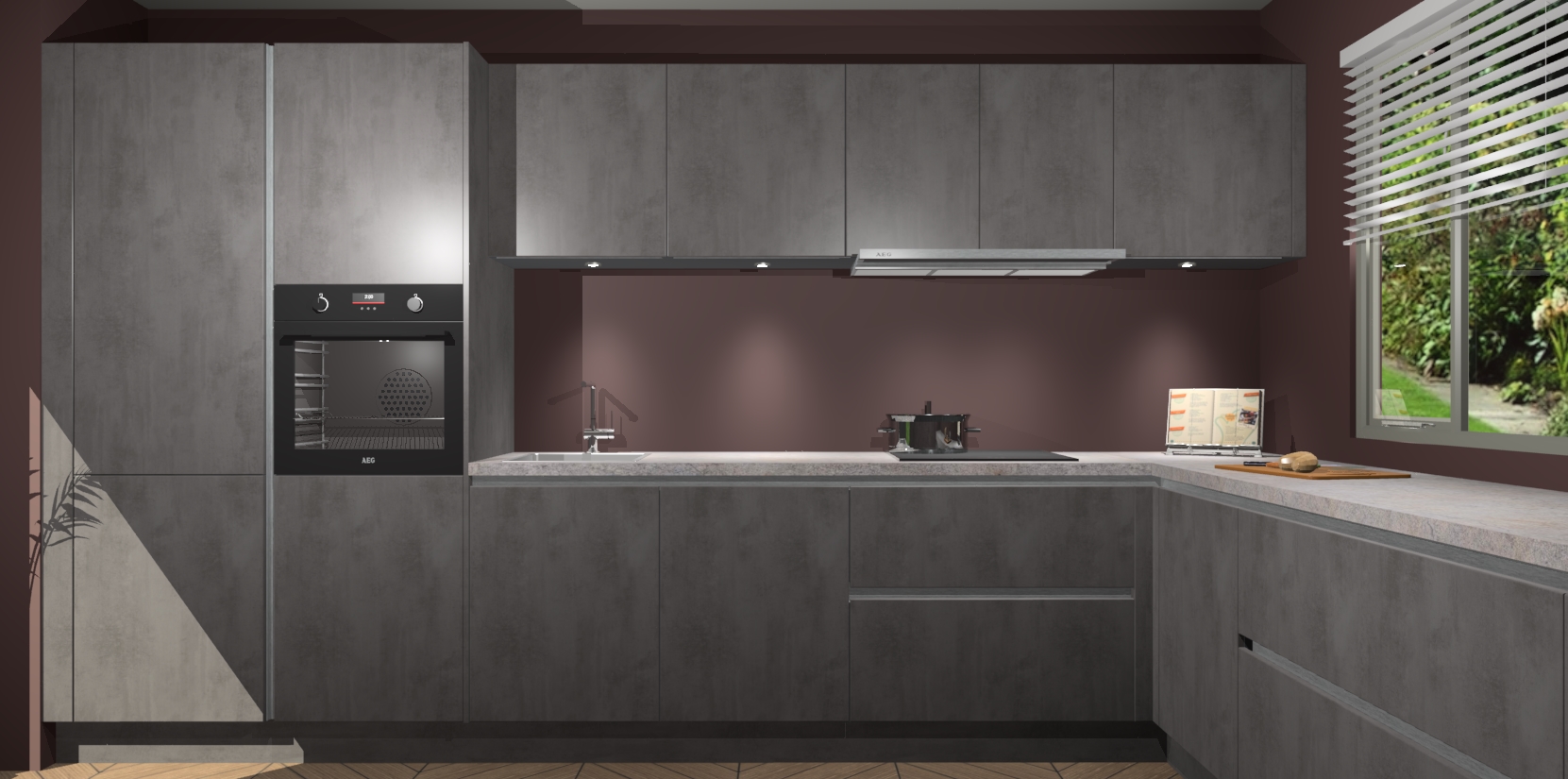 Verwelkom de natuurlijke warmte van de Beton Antraciet greeploze keuken Petten in uw huis. Deze prachtige hoekkeuken met zijn moderne design en warme houten look geeft u meer dan genoeg opbergruimte om uw comfortabel te voelen in uw keuken. Geniet van soft-close deuren die al uw gasten het gevoel zullen geven dat ze zich in een luxueuze ruimte bevinden.