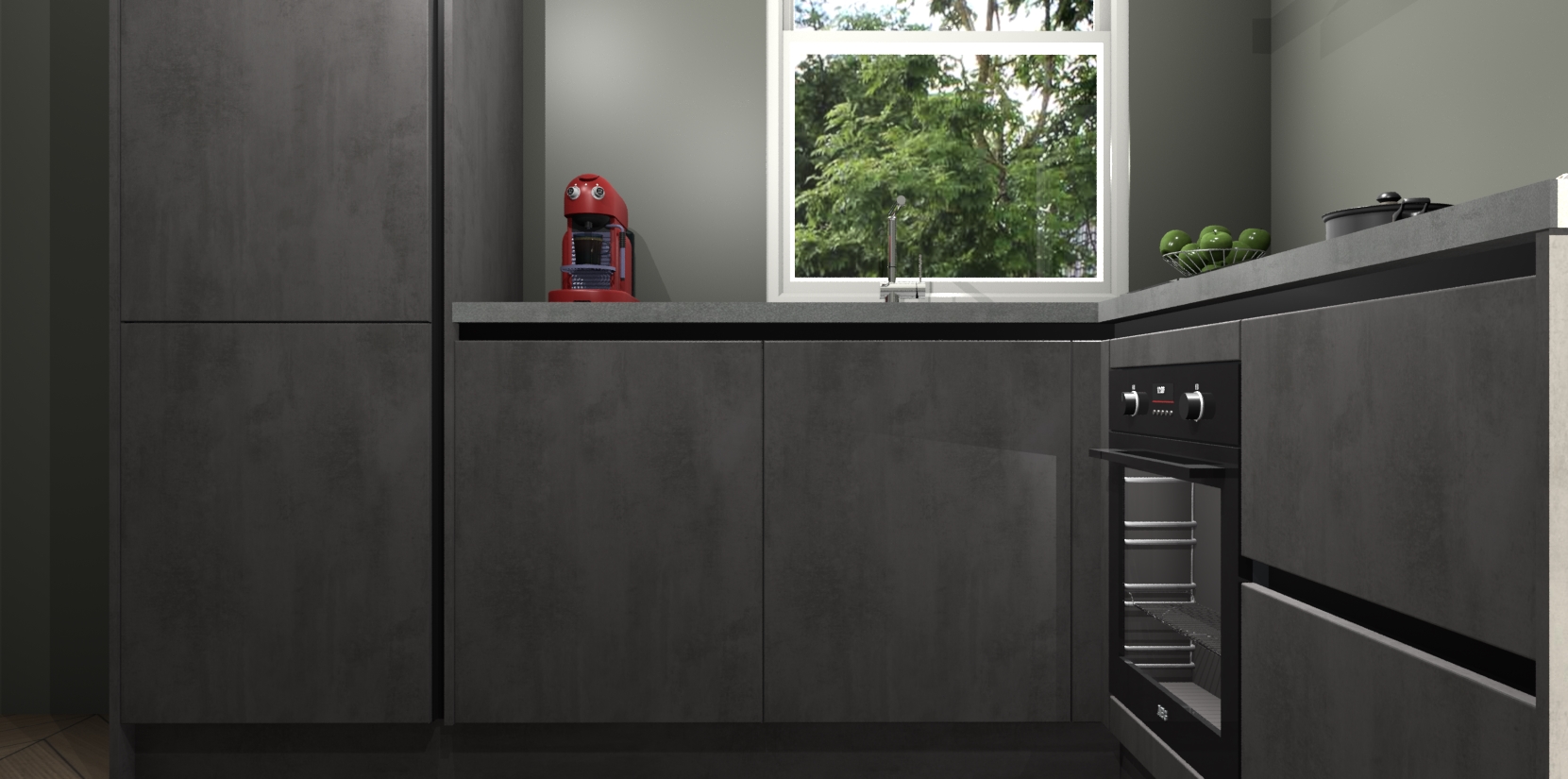 De Beton Antraciet greeploze keuken Phuket heeft alles wat u maar kunt wensen. Niet alleen zijn er softclose deuren, maar ook 5 ingebouwde apparaten: een oven, inductiekookplaat, afzuigkap, vaatwasser en koelkast - waarbij u later gemakkelijk naar het AEG merk, van inductiekookplaat naar kookplaat met geïntegreerde afzuiging of van oven naar combimagnetron kunt upgraden. Dat alles tegen een vast laag tarief! Bovendien geeft de Beton Antraciet greeploze keuken Phuket supersnelle levering van 7 weken. Echt iets voor u als u er niet op wilt wachten om het resultaat te zien in eigen keuken!
