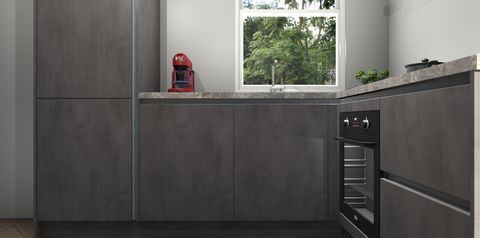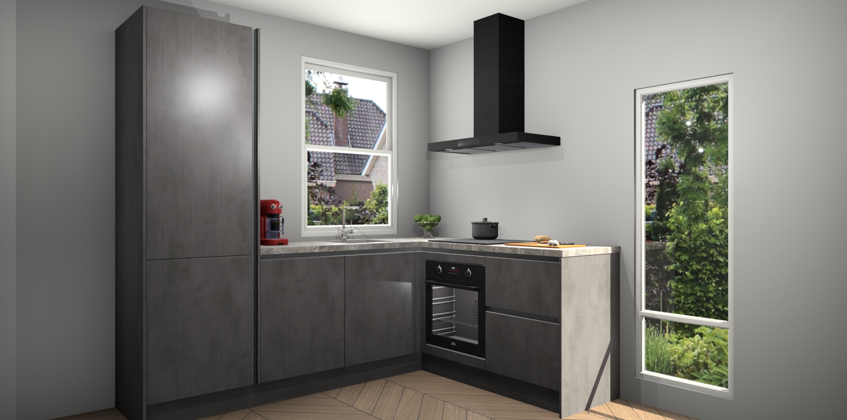 De Beton Antraciet greeploze keuken Phuket heeft alles wat u maar kunt wensen. Niet alleen zijn er softclose deuren, maar ook 5 ingebouwde apparaten: een oven, inductiekookplaat, afzuigkap, vaatwasser en koelkast - waarbij u later gemakkelijk naar het AEG merk, van inductiekookplaat naar kookplaat met geïntegreerde afzuiging of van oven naar combimagnetron kunt upgraden. Dat alles tegen een vast laag tarief! Bovendien geeft de Beton Antraciet greeploze keuken Phuket supersnelle levering van 7 weken. Echt iets voor u als u er niet op wilt wachten om het resultaat te zien in eigen keuken!