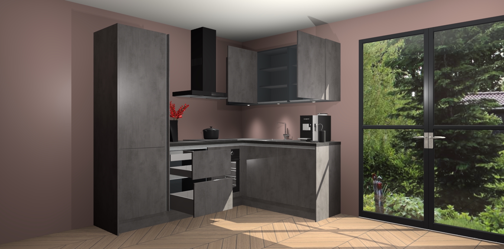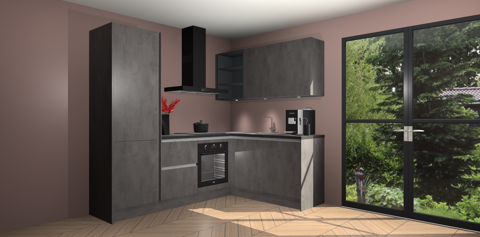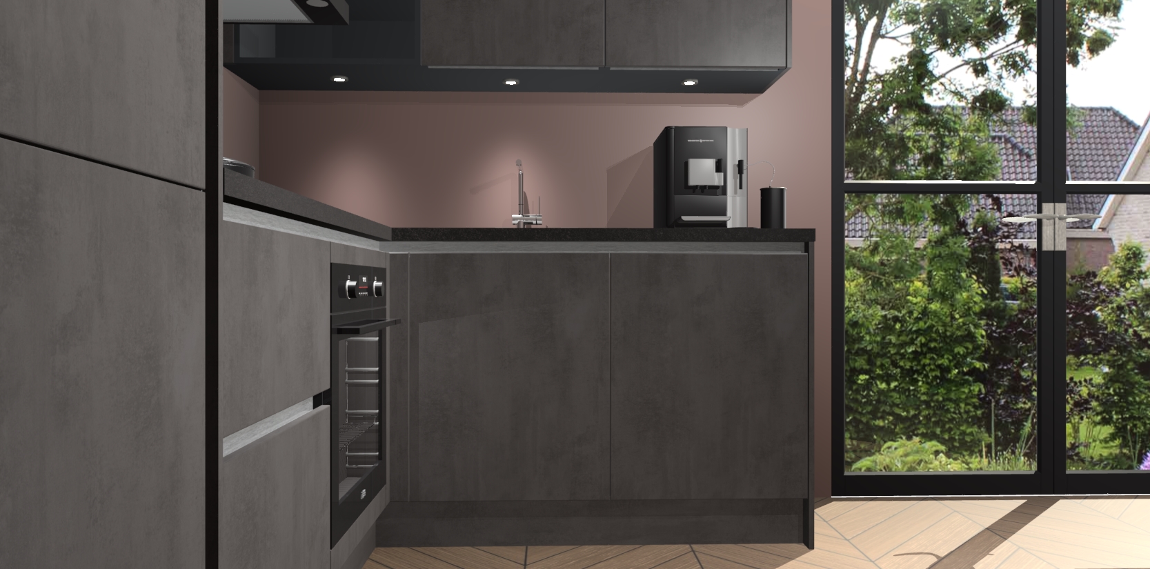 Wauw, dit is de Beton Antraciet greeploze keuken Pilsen! U kunt gerust zeggen dat u elegantie combineert met functionaliteit met deze keuken. Met een modern en chique ontwerp is de keuken precies wat u nodig heeft om uw ruimte te verfraaien. De binnenzijde van de kasten is in dezelfde donkere kleur als de buitenzijde voor een uniforme look, compleet met softclose-kasten die stil sluiten.