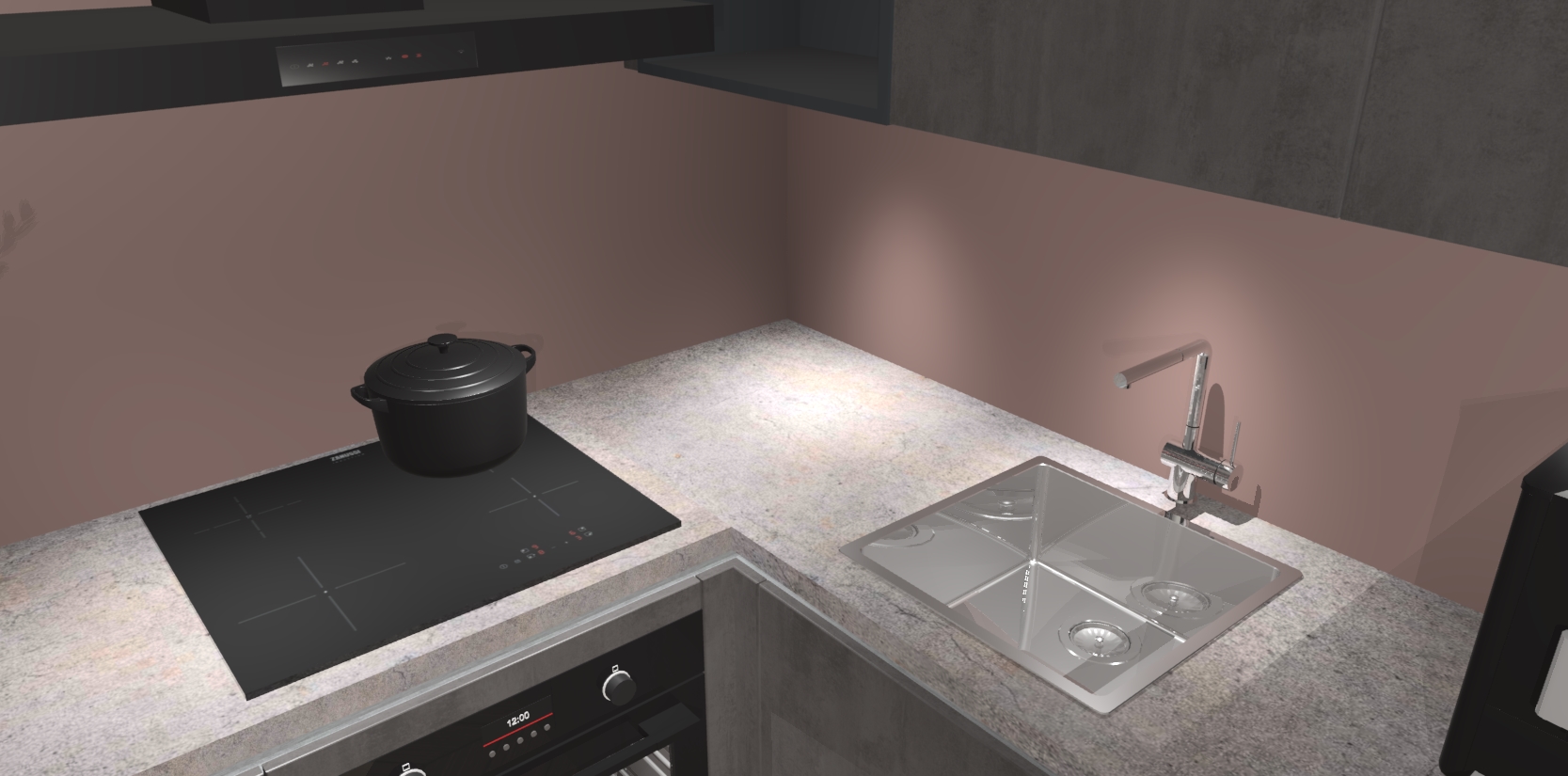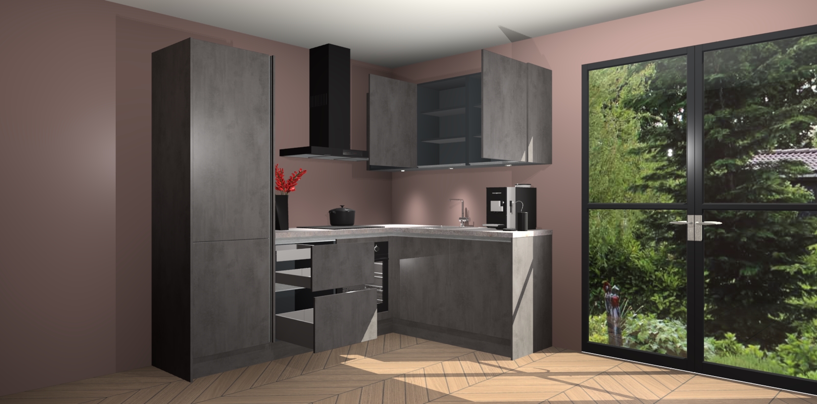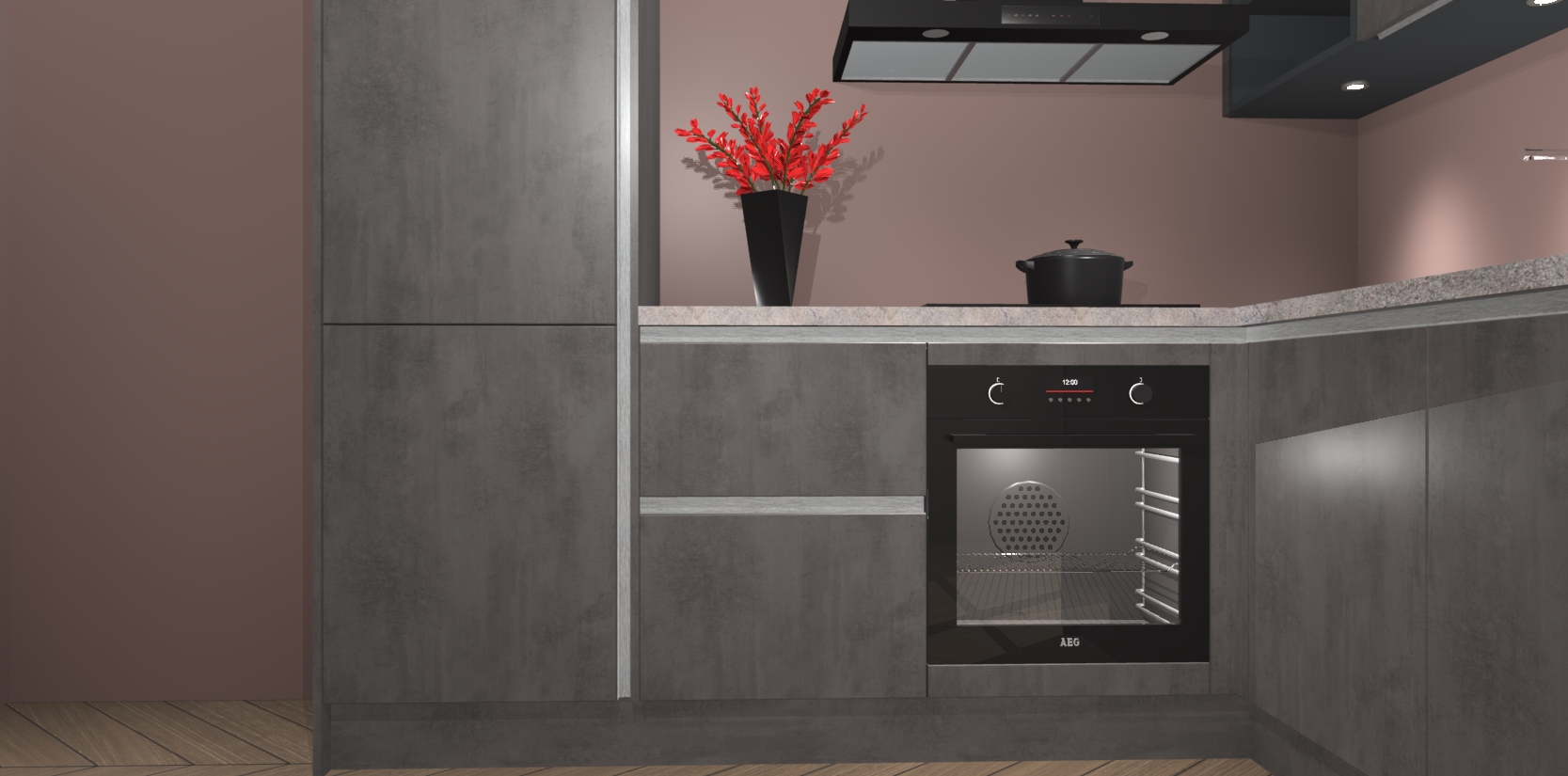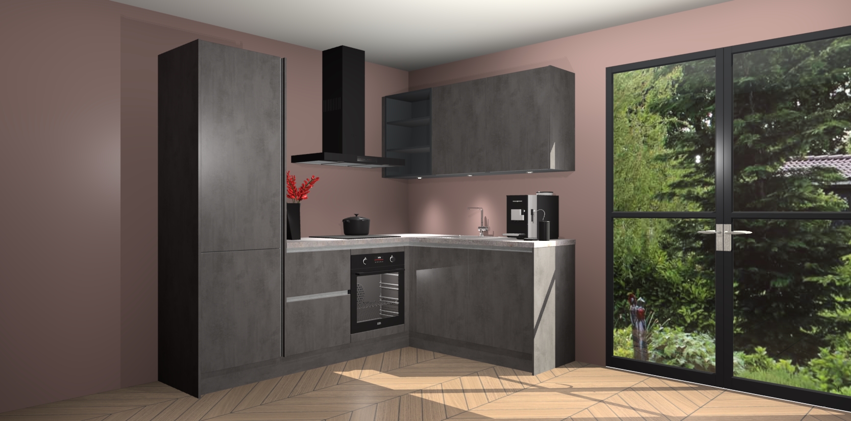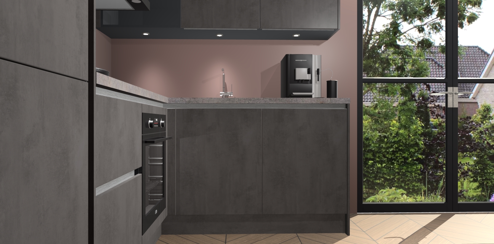 Wauw, dit is de Beton Antraciet greeploze keuken Pilsen! U kunt gerust zeggen dat u elegantie combineert met functionaliteit met deze keuken. Met een modern en chique ontwerp is de keuken precies wat u nodig heeft om uw ruimte te verfraaien. De binnenzijde van de kasten is in dezelfde donkere kleur als de buitenzijde voor een uniforme look, compleet met softclose-kasten die stil sluiten.