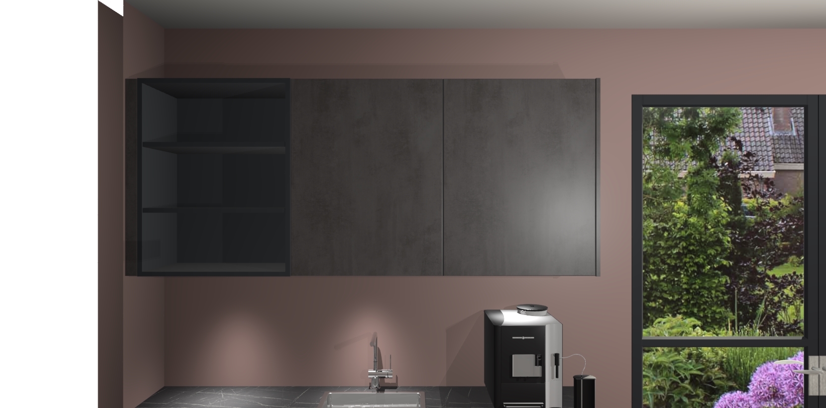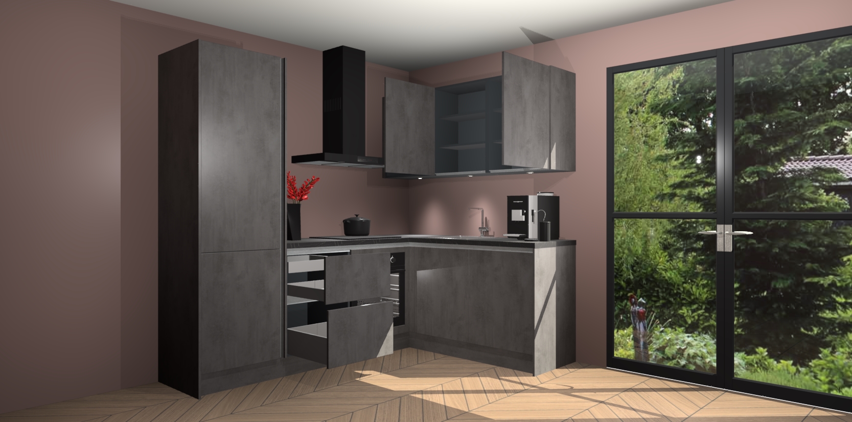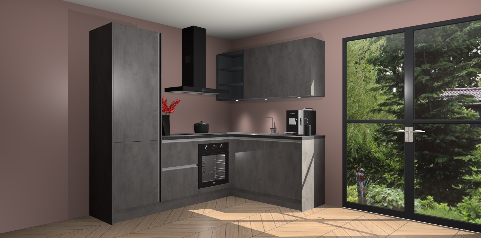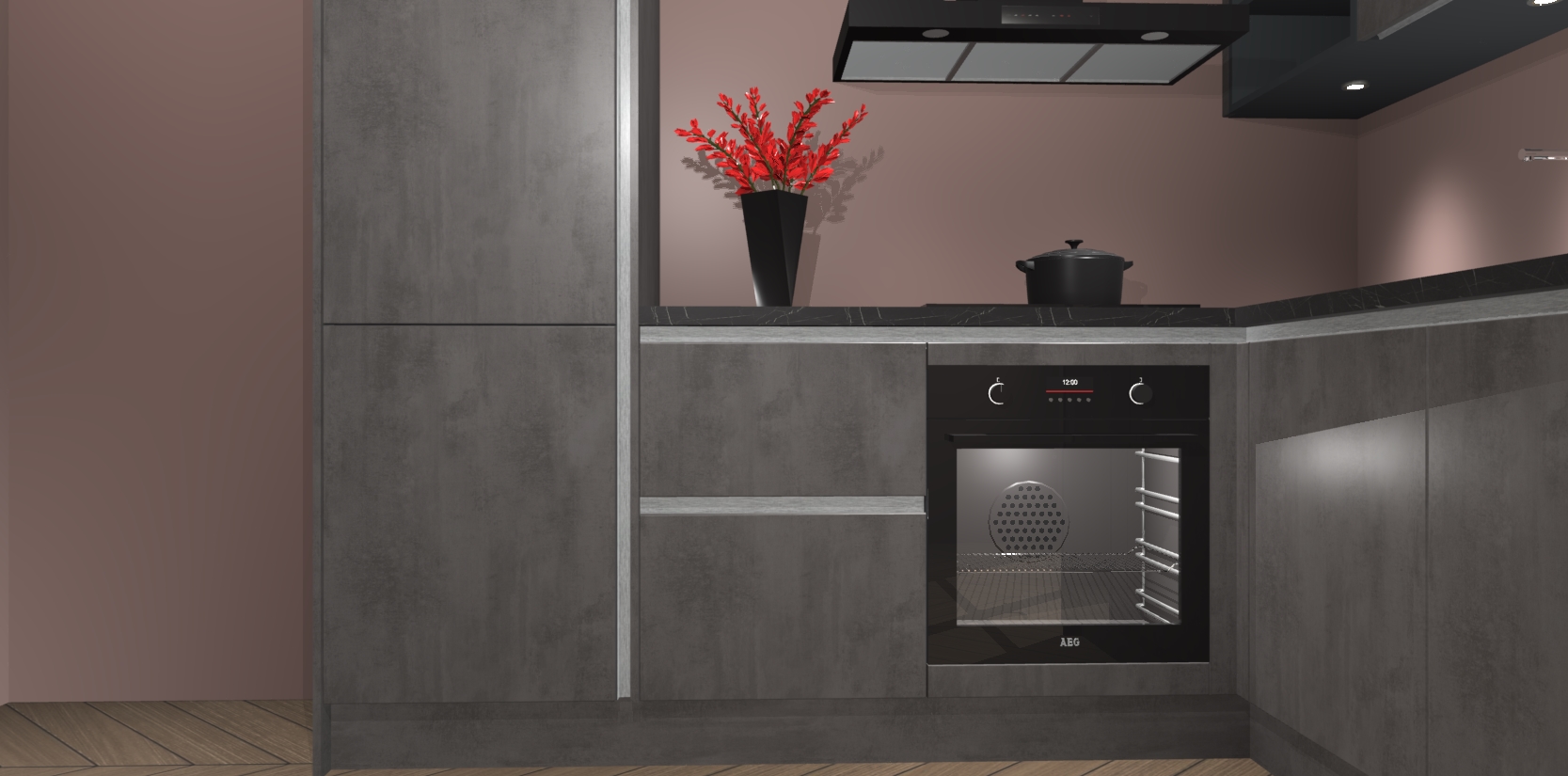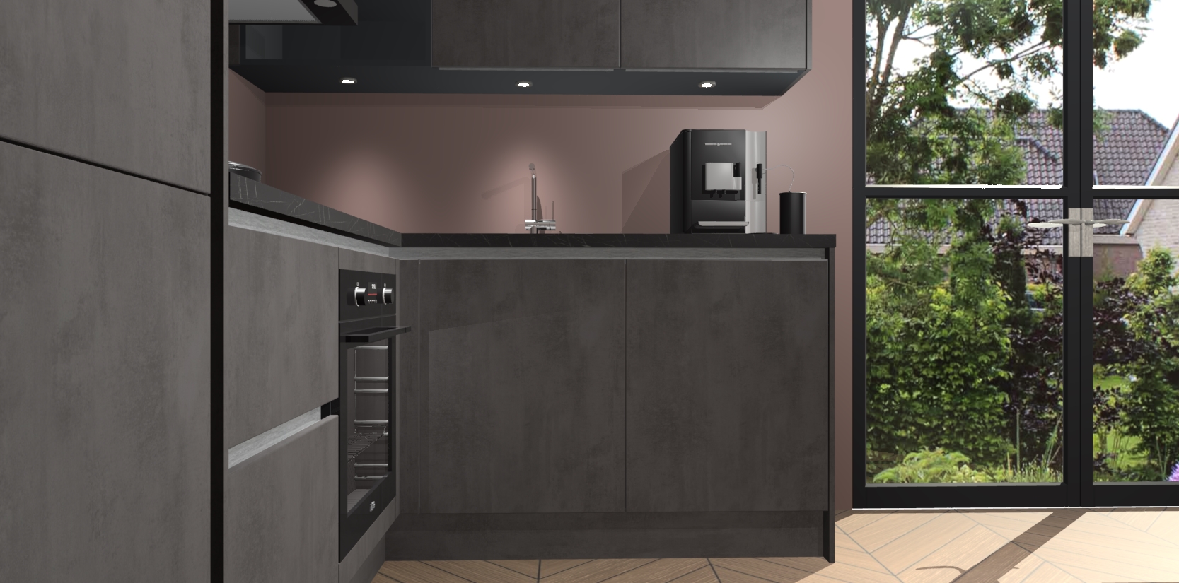 Wauw, dit is de Beton Antraciet greeploze keuken Pilsen! U kunt gerust zeggen dat u elegantie combineert met functionaliteit met deze keuken. Met een modern en chique ontwerp is de keuken precies wat u nodig heeft om uw ruimte te verfraaien. De binnenzijde van de kasten is in dezelfde donkere kleur als de buitenzijde voor een uniforme look, compleet met softclose-kasten die stil sluiten.
