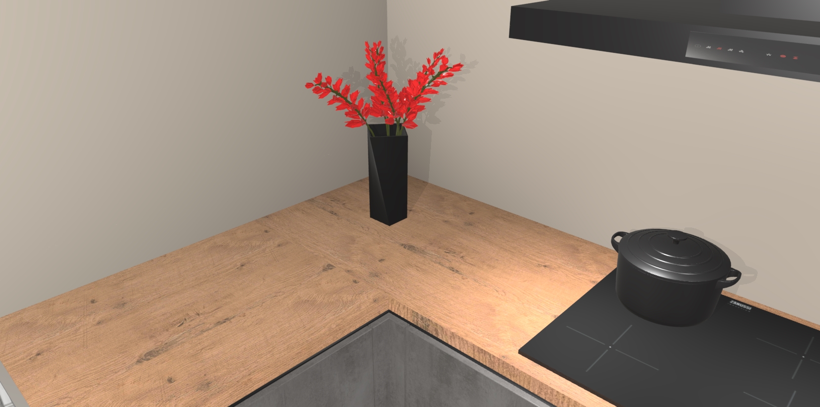 - Bij een hoekwerkblad zijn de hoeken in gevreesd en op maat gemaakt