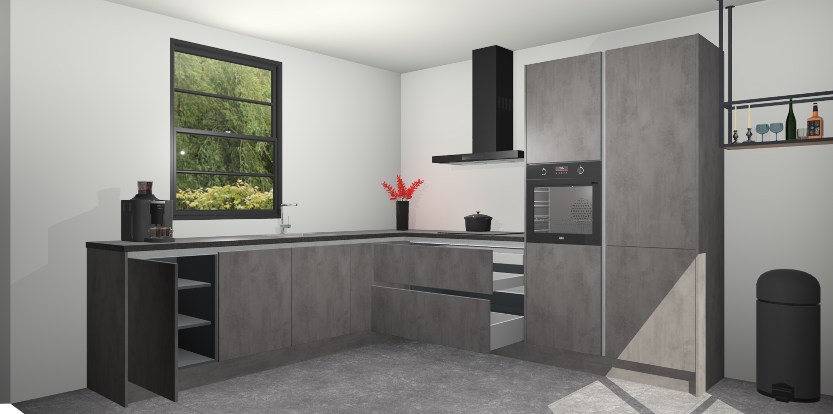 Nederlandse keukens worden niet comfortabeler dan de Beton Antraciet greeploze keuken Porto! Deze prachtige en unieke keuken straalt sfeer uit en biedt tegelijkertijd praktische opbergoplossingen. Of u nu een meester-kok bent of een culinaire amateur, dit is de ideale keuze voor u! Deze keuken is ideaal voor grote gezinnen, huizen met veel gasten - of iedereen die graag thuis is - en heeft genoeg functies om uw gezin te voeden.