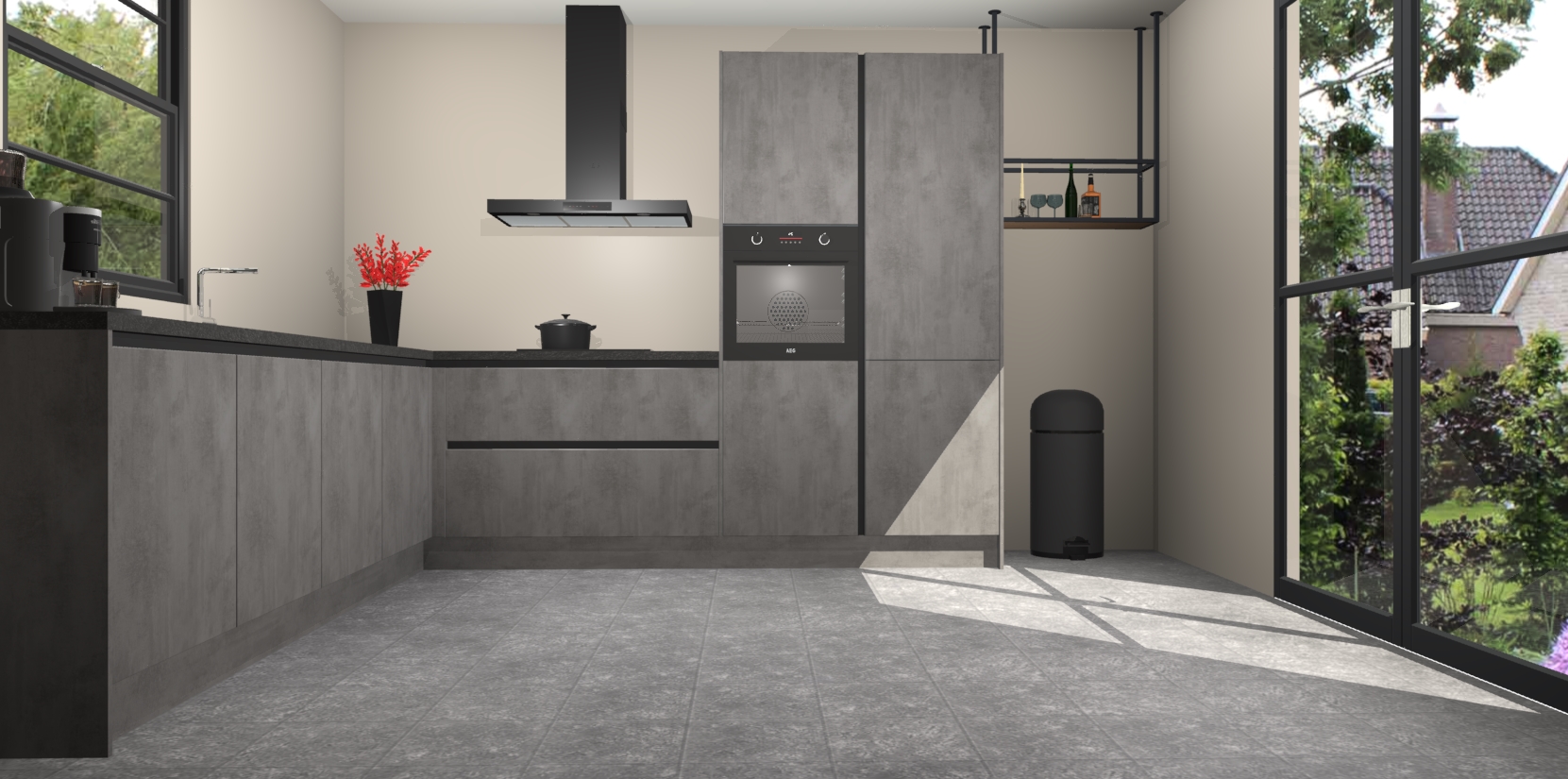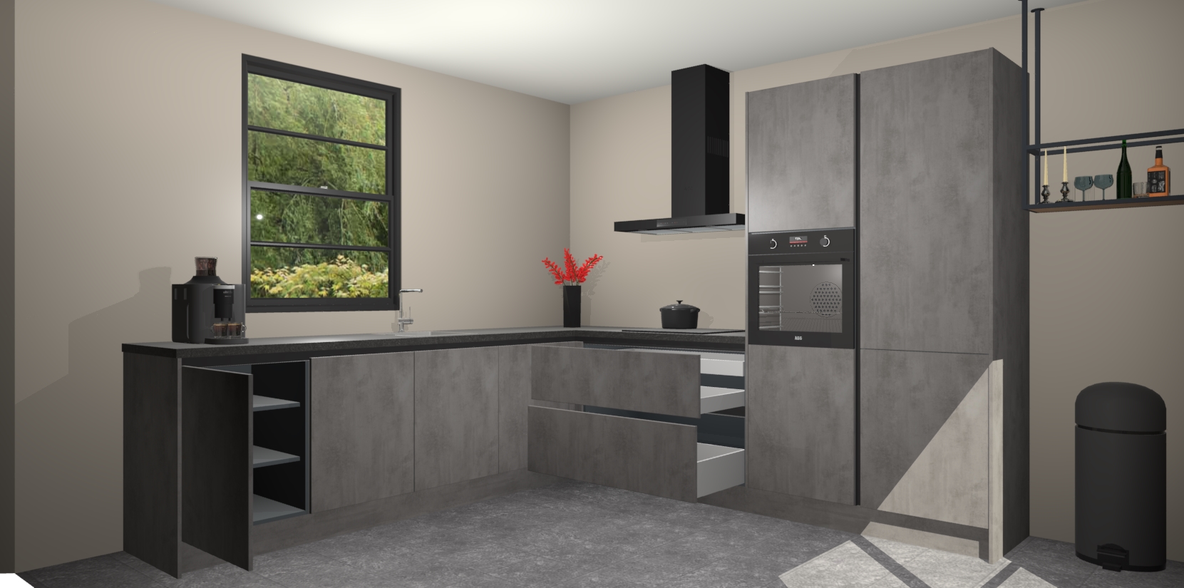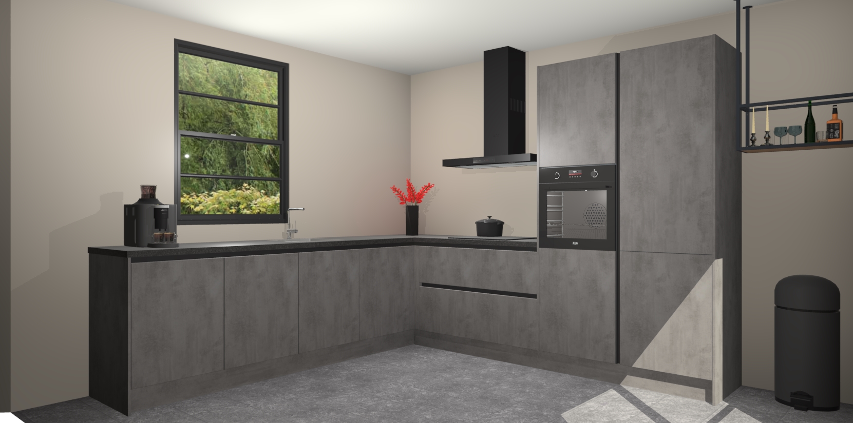 Nederlandse keukens worden niet comfortabeler dan de Beton Antraciet greeploze keuken Porto! Deze prachtige en unieke keuken straalt sfeer uit en biedt tegelijkertijd praktische opbergoplossingen. Of u nu een meester-kok bent of een culinaire amateur, dit is de ideale keuze voor u! Deze keuken is ideaal voor grote gezinnen, huizen met veel gasten - of iedereen die graag thuis is - en heeft genoeg functies om uw gezin te voeden.