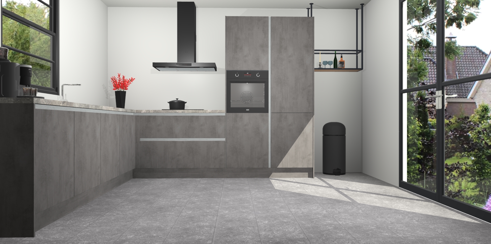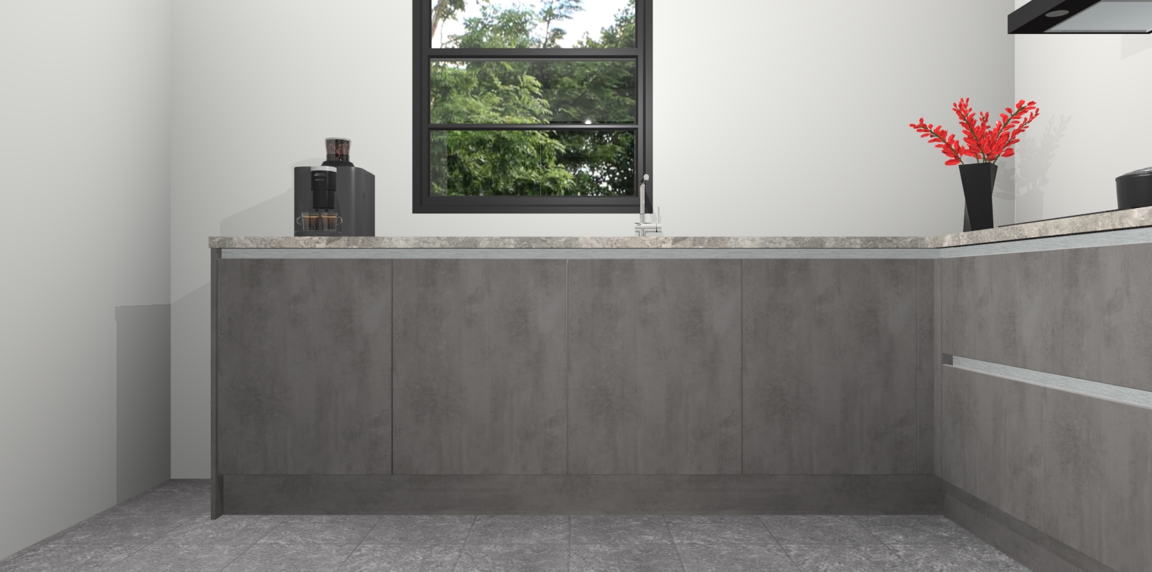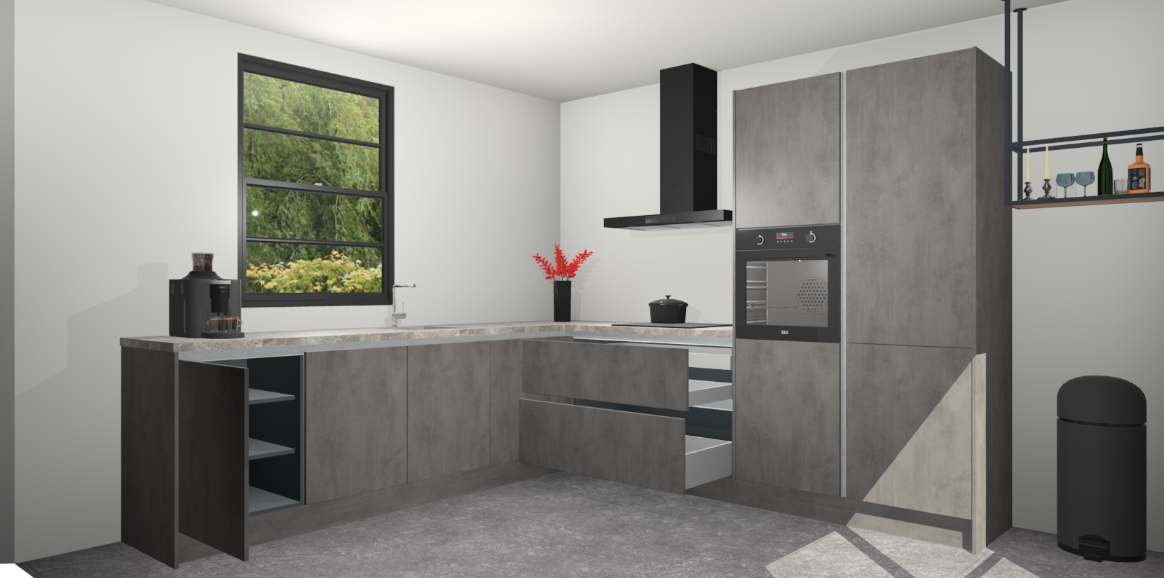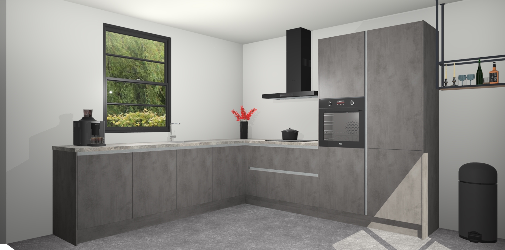 Nederlandse keukens worden niet comfortabeler dan de Beton Antraciet greeploze keuken Porto! Deze prachtige en unieke keuken straalt sfeer uit en biedt tegelijkertijd praktische opbergoplossingen. Of u nu een meester-kok bent of een culinaire amateur, dit is de ideale keuze voor u! Deze keuken is ideaal voor grote gezinnen, huizen met veel gasten - of iedereen die graag thuis is - en heeft genoeg functies om uw gezin te voeden.