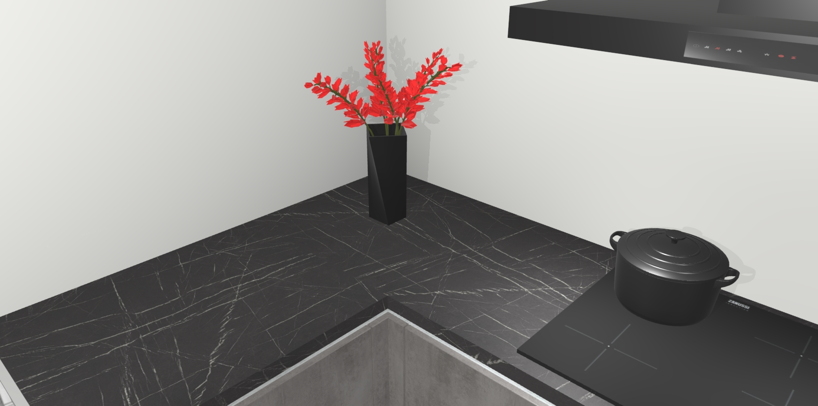 • Bij een hoekwerkblad zijn de hoeken in gevreesd en op maat gemaakt