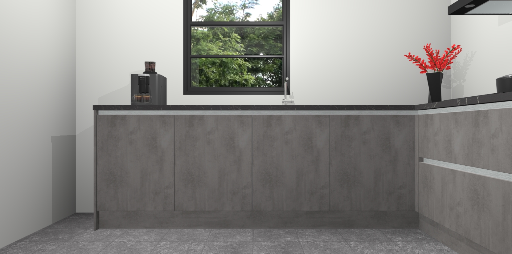 Nederlandse keukens worden niet comfortabeler dan de Beton Antraciet greeploze  keuken Porto! Deze prachtige en unieke keuken straalt sfeer uit en biedt tegelijkertijd praktische opbergoplossingen. Of u nu een meester-kok bent of een culinaire amateur, dit is de ideale keuze voor u! Deze keuken is ideaal voor grote gezinnen, huizen met veel gasten - of iedereen die graag thuis is - en heeft genoeg functies om uw gezin te voeden.