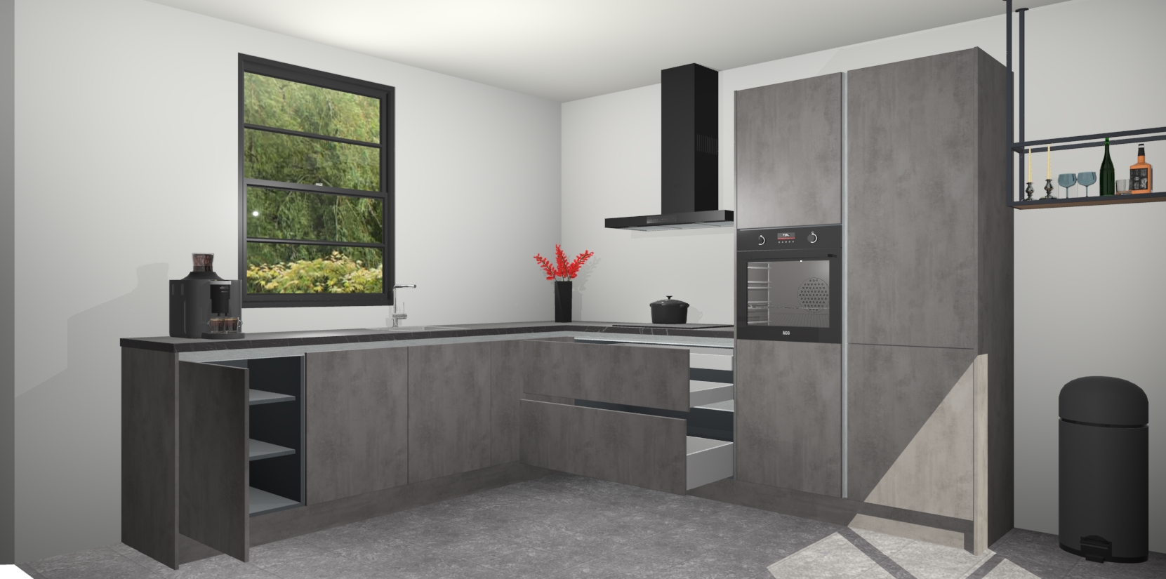 De Beton Antraciet greeploze keuken Porto heeft 5 ingebouwde apparaten - een oven, inductiekookplaat, afzuigkap, vaatwasser en koelkast - waarmee u in een handomdraai heerlijke gerechten bereidt. Soft-close deuren zorgen voor nog meer functionaliteit en gemak. En dit alles voor een onverslaanbaar vaste prijs. En als u nu bestelt, duurt de levering maar 7 weken! Wat nog ongelooflijker is, is dat onze kasten voor gemonteerd worden geleverd.