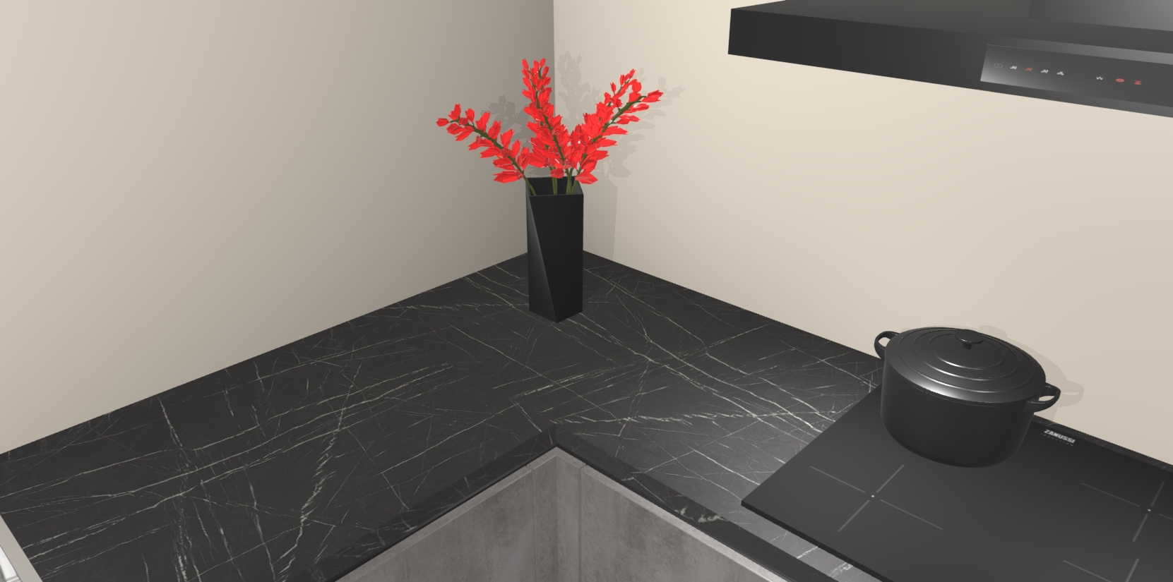 - Bij een hoekwerkblad zijn de hoeken in gevreesd en op maat gemaakt