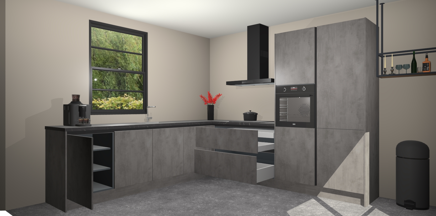Nederlandse keukens worden niet comfortabeler dan de Beton Antraciet greeploze keuken Porto! Deze prachtige en unieke keuken straalt sfeer uit en biedt tegelijkertijd praktische opbergoplossingen. Of u nu een meester-kok bent of een culinaire amateur, dit is de ideale keuze voor u! Deze keuken is ideaal voor grote gezinnen, huizen met veel gasten - of iedereen die graag thuis is - en heeft genoeg functies om uw gezin te voeden.