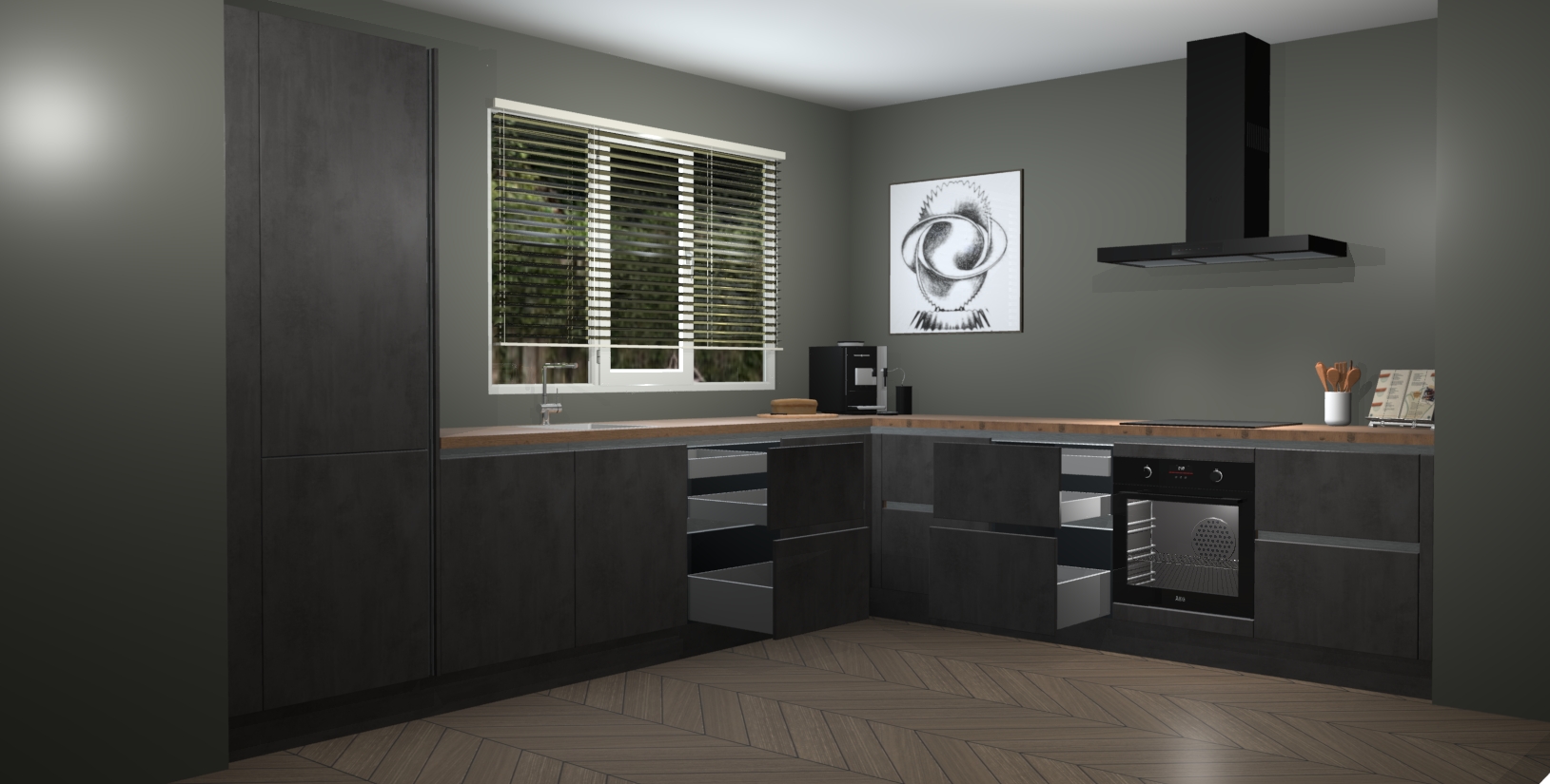 Dankzij de greeploze afwerking past de Beton antraciet greeploze keuken Prato naadloos in elk huis of appartement. De soft-close deuren geven je extra gemoedsrust, want ze sluiten vanzelf en slaan nooit dicht! En alsof dat nog niet genoeg is, worden deze kasten volledig gemonteerd geleverd, dus maak je geen zorgen over eventuele installatieproblemen.