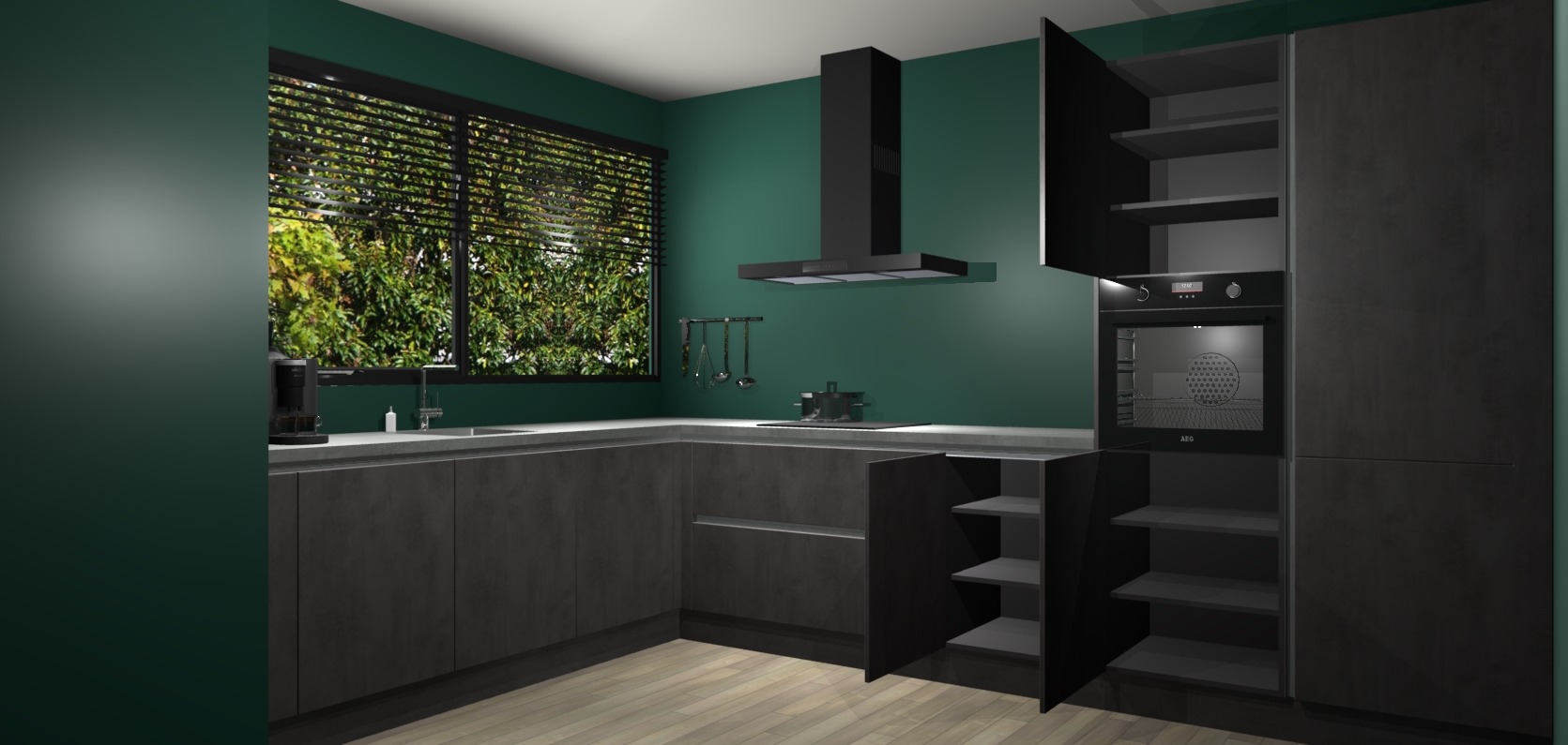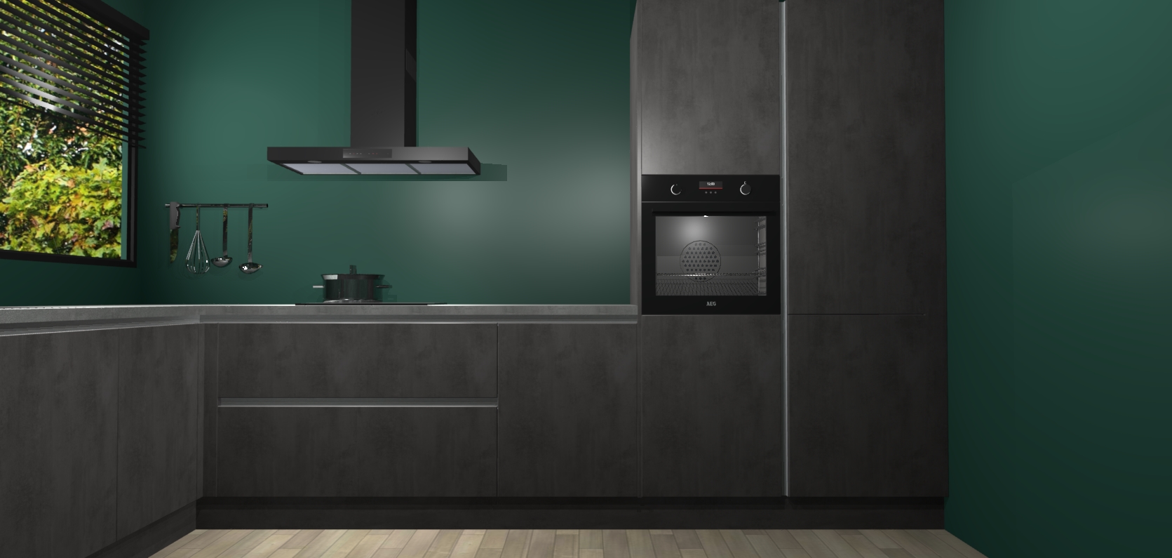 Met een modern, tijdloos design en ruime opslagruimte, zult u zich in no-time thuis voelen in uw nieuwe keuken. Uw leven wordt eenvoudiger met de soft-close deuren die voor het ultieme stille comfort zorgen - geen geluid dat u stoort terwijl u kookt. Ook is de keuken voorzien van 5 ingebouwde apparaten: een oven, inductie kookplaat, afzuigkap, vaatwasser en koelkast. Deze kunnen gemakkelijk na bestelling worden bijgewerkt naar AEG - waardoor uw luxe ervaring compleet is.