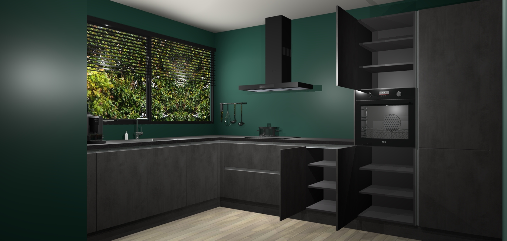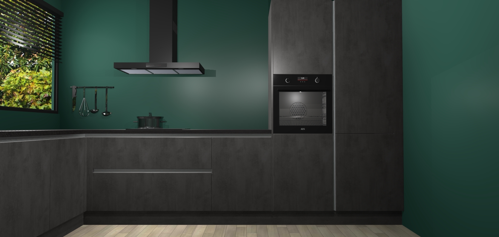 Met een modern, tijdloos design en ruime opslagruimte, zult u zich in no-time thuis voelen in uw nieuwe keuken. Uw leven wordt eenvoudiger met de soft-close deuren die voor het ultieme stille comfort zorgen - geen geluid dat u stoort terwijl u kookt. Ook is de keuken voorzien van 5 ingebouwde apparaten: een oven, inductie kookplaat, afzuigkap, vaatwasser en koelkast. Deze kunnen gemakkelijk na bestelling worden bijgewerkt naar AEG - waardoor uw luxe ervaring compleet is.