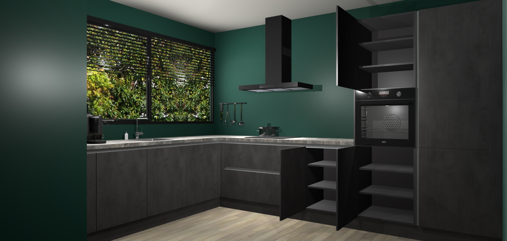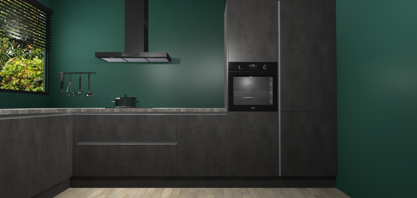 Met een modern, tijdloos design en ruime opslagruimte, zult u zich in no-time thuis voelen in uw nieuwe keuken. Uw leven wordt eenvoudiger met de soft-close deuren die voor het ultieme stille comfort zorgen - geen geluid dat u stoort terwijl u kookt. Ook is de keuken voorzien van 5 ingebouwde apparaten: een oven, inductie kookplaat, afzuigkap, vaatwasser en koelkast. Deze kunnen gemakkelijk na bestelling worden bijgewerkt naar AEG - waardoor uw luxe ervaring compleet is.